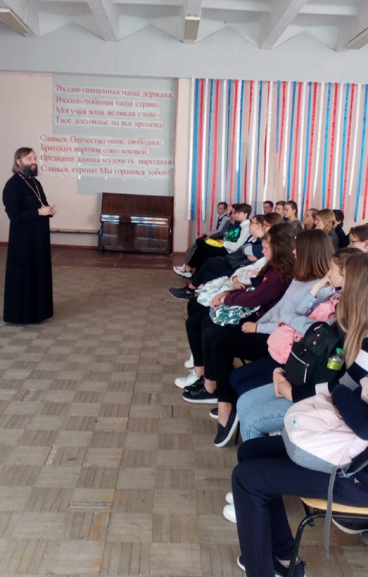28 сентября в школе № 7 городского округа Кашира состоялась встреча учащихся седьмых классов с благочинным Каширского церковного округа священником Валерием Сосковцом. Он рассказал о духовном вреде пьянства и курения.
