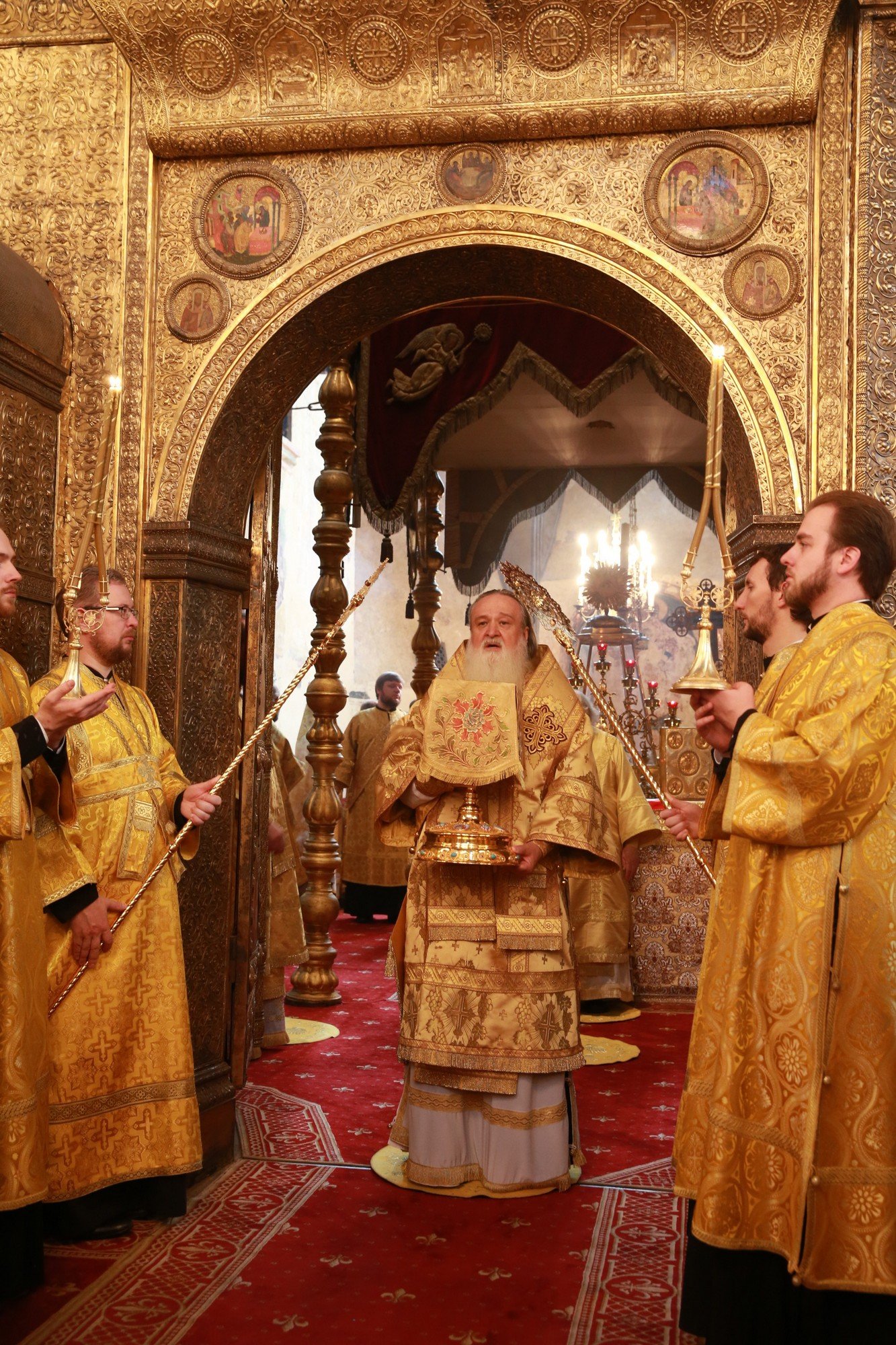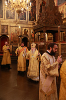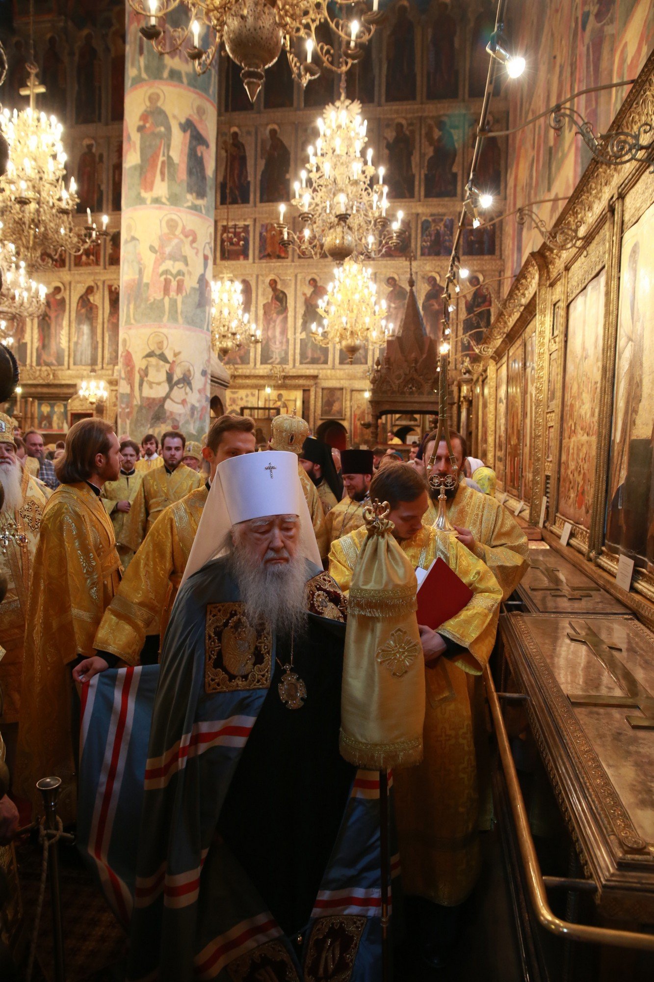 29 сентября, в день памяти святителей Киприана и Фотия, митрополитов Киевских, Московских и всея Руси, и мученицы Людмилы, княгини Чешской, по благословению Святейшего Патриарха Кирилла митрополит Ювеналий совершил утреню и Божественную литургию в Патриаршем Успенском соборе Московского Кремля.