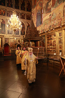 Его Высокопреосвященству сослужили епископ Серпуховской Роман, епископ Зарайский Константин, секретарь Патриарха Московского и всея Руси по городу Москве протопресвитер Владимир Диваков, духовенство города Москвы и Московской епархии.