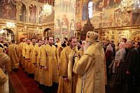 По окончании Божественной литургии было совершено поклонение Кресту и славление святителям Киприану и Фотию и мученице Людмиле.