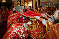29 сентября, по благословению митрополита Ювеналия, епископ Видновский Тихон совершил Божественную литургию в соборе Всех святых, в земле Русской просиявших, г. Домодедово и возглавил торжества, посвященные памяти новомучеников и исповедников Домодедовских. Его Преосвященству сослужили благочинные церковных округов Московской епархии: Домодедовского – священник Андрей Дьячков и Подольского – протоиерей Олег Сердцев, настоятель Христорождественского храма г. Домодедово протоиерей Александр Васильев, настоятель Вознесенской Давидовой пустыни игумен Сергий (Куксов) и духовенство благочиния. За богослужением молились председатель совета депутатов городского округа Домодедово Леонид Ковалевский, представители общественности и прихожане храмов Домодедовского благочиния. Богослужебные песнопения исполнял хор собора Всех святых, в земле Русской просиявших г. Домодедово. По окончании Литургии был совершен молебен новомученикам и исповедникам Домодедовским и крестный ход. Владыка Тихон передал всем собравшимся благословение митрополита Ювеналия.