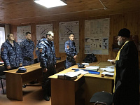 29 октября, в день профессионального праздника Росгвардии, заместитель благочинного Дубненско-Талдомского церковного округа священник Владимир Федоров провел в Талдомском отделе вневедомственной охраны – филиале Управления вневедомственной охраны Войск национальной гвардии России по Московской области беседу с сотрудниками о мученике Иоанне Воине. По окончании беседы отец Владимир совершил молебен.