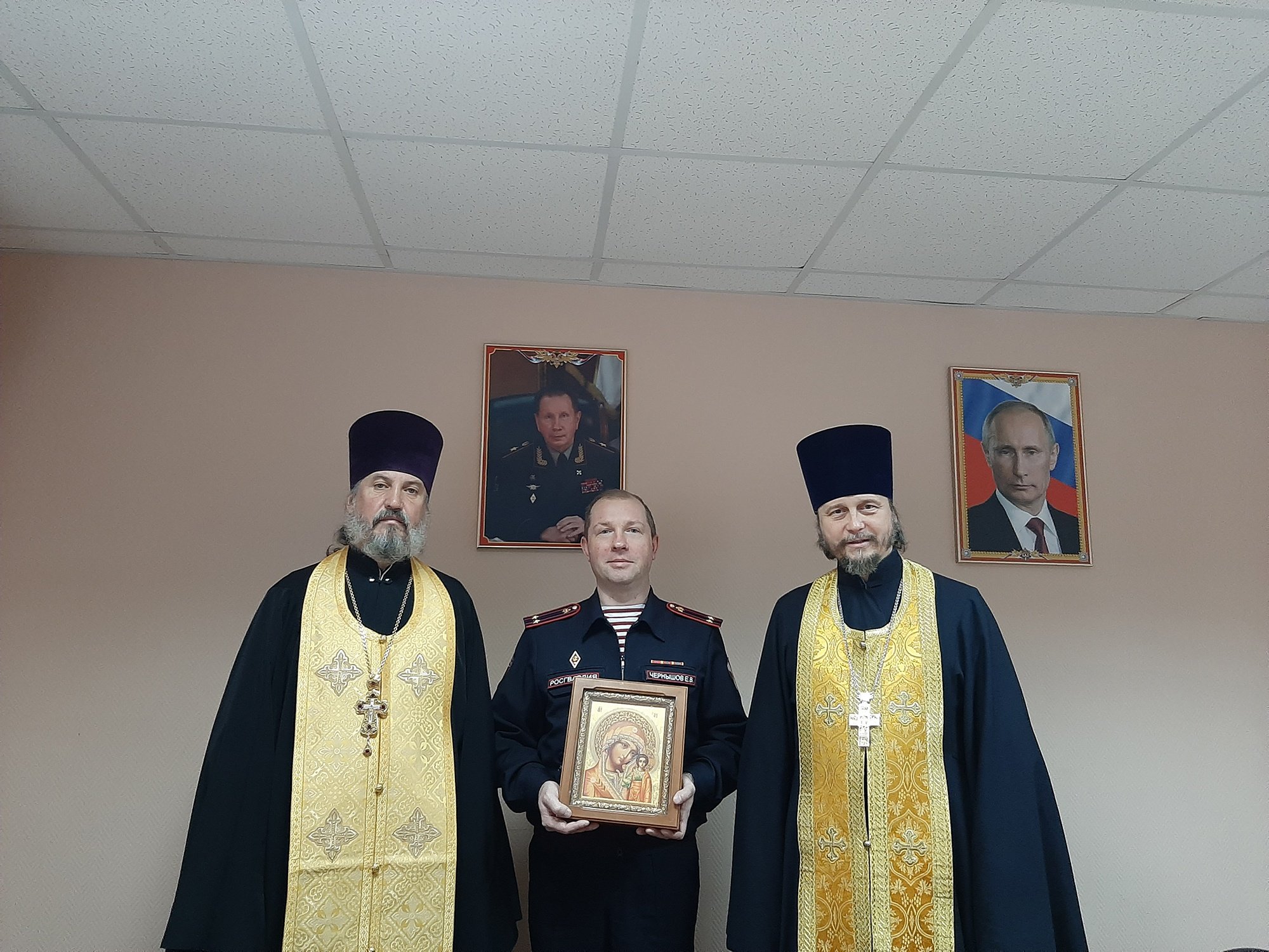 29 октября, в День образования подразделений вневедомственной охраны , состоялось праздничное мероприятие для сотрудников Дмитровского отдела вневедомственной охраны Росгвардии по Московской области. В торжествах принял участие благочинный Дмитровского округа протоиерей Афанасий Чорногуз, который в сослужении ответственного за взаимодействие с Вооруженными силами и правоохранительными органами в Дмитровском благочинии протоиерея Валентина Корнеева совершил молебен, поздравил начальника отдела подполковника полиции Е. В. Чернышова и весь личный состав с профессиональным праздником и подарил отделу Казанскую икону Божией Матери.
