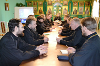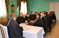 25 ноября в Серафимовском храме при Александро-Невском соборе г. Егорьевска состоялось братское совещание духовенства Егорьевского благочиния. Благочинный протоиерей Сергий Кожевников довел до сведения собравшихся циркуляры и распоряжения митрополита Ювеналия. Настоятель Успенского храма села Саввино священник Александр Леонтьев рассказал о работе по восстановлению порушенной святыни. По окончании совещания был проведен пастырский семинар «Раскол в семье и пути его преодоления», на котором выступил с докладом магистрант Сретенской духовной семинарии, клирик храма святителя Николая в Голутвине диакон Анатолий Гольдман.