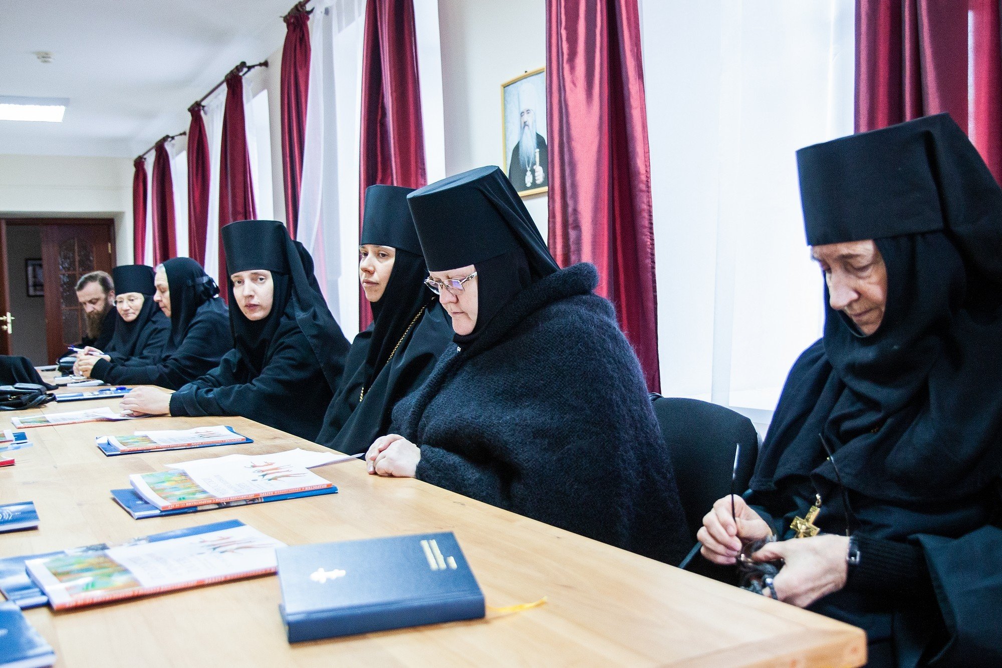 26 ноября в мужском монастыре Николо-Берлюковская пустынь состоялось собрание игуменов и игумений монастырей Московской епархии. Игумения Спасо-Бородинского монастыря Серафима (Исаева) сделала доклад «Бородино в годы Великой Отечественной войны», а игумения Введенского Владычнего монастыря Алексия (Петрова) – доклад «Взаимоотношения монахов с миром в свете монашеских обетов». Благочинный монастырей игумен Евмений (Лагутин) известил собравшихся о ходе ремонтно-восстановительных работ в больничном корпусе общины «Отрада и Утешение», которые осуществляются силами Монастырского благочиния в рамках программы Благотворительного фонда по восстановлению порушенных святынь. Обсуждались также вопросы жизни благочиния.