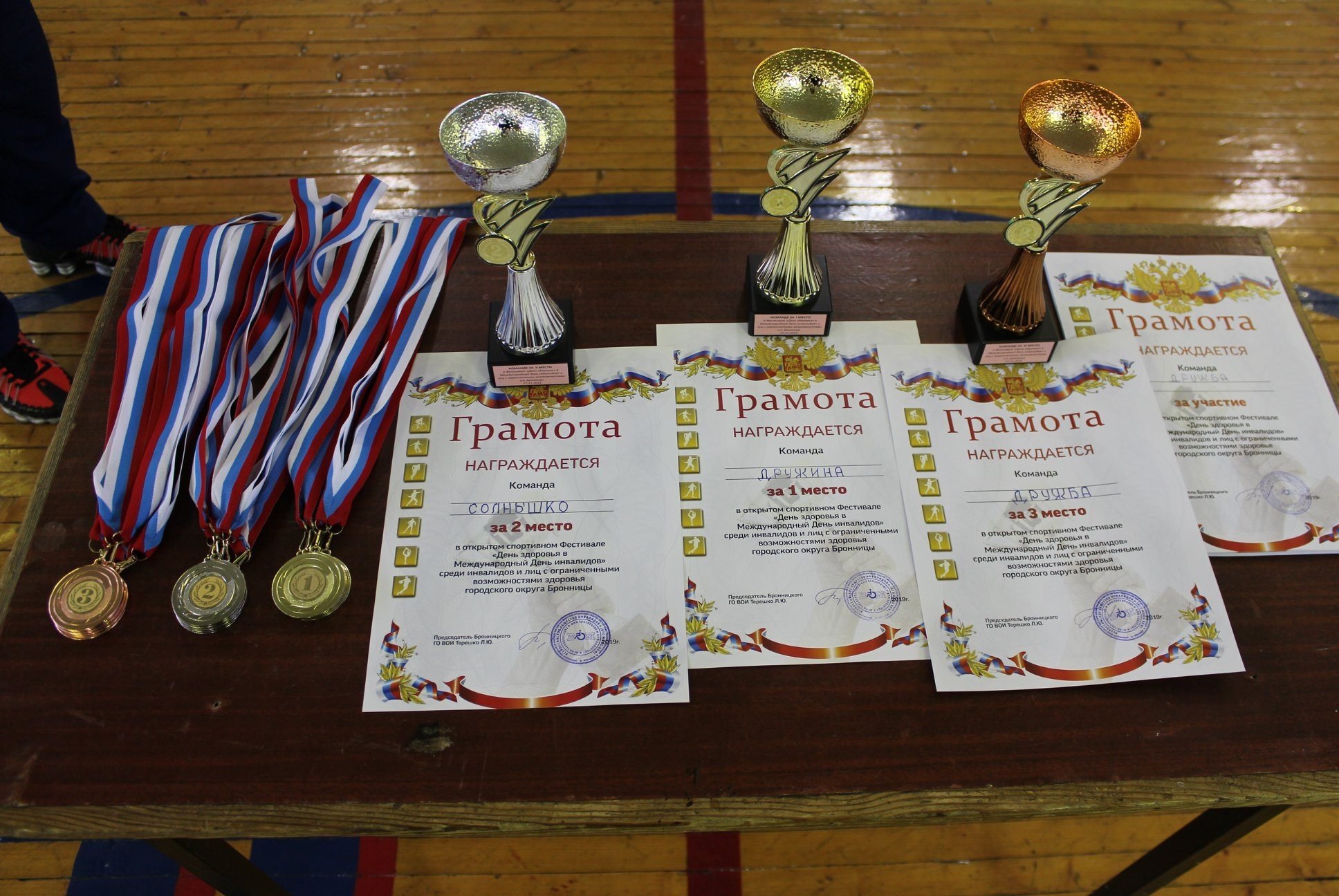 27 ноября на территории физкультурно-оздоровительного комплекса поселка Горка прошел спортивный фестиваль инвалидов и лиц с ограниченными возможностями здоровья «День здоровья в Международный день инвалидов», среди участников которого были представители Денежниковоского психоневрологического интерната и центра социального обслуживания «Забота» г. Бронницы. Фестиваль был организован по инициативе председателя Бронницкой городской организации инвалидов Любови Терешко. С приветственным словом к участникам соревнований обратились заместитель главы городского округа Бронницы Диана Касимова, председатель совета депутатов Александр Каширин, благочинный Бронницкого церковного округа священник Сергий Себелев, председатель совета ветеранов Нина Корнеева и начальник отдела спорта, туризма и работы с молодежью Леонид Савин.