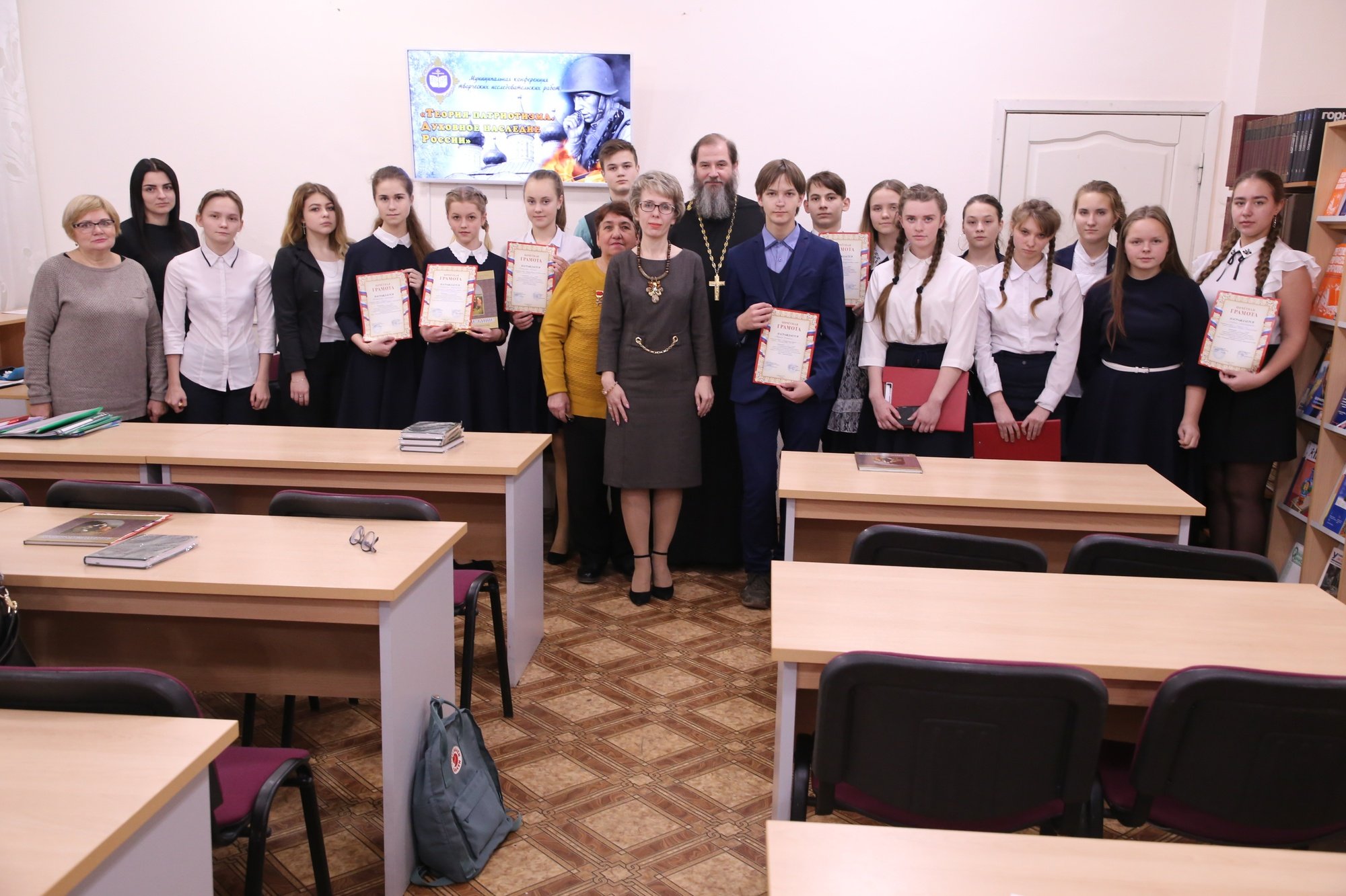28 ноября в Зарайском педагогическом колледже состоялась муниципальная конференция «Теория патриотизма. Духовное наследие России». Ученики тринадцати образовательных учреждений городского округа Зарайск приняли участие в конкурсе творческих исследовательских работ, которые были представлены на конференции на секциях «Духовная твердыня России», «Священная война», «Наследники. Духовное наследие России». В экспертные группы, которые оценивали качество выступлений, вошли педагоги, представили управления образования и ветеранских организаций, духовенство Зарайского благочиния. Подводя итоги конференции, перед собравшимися выступили начальник отдела управления образования округа Н. А. Павлова, настоятель Благовещенского храма г. Зарайска священник Дионисий Утенков, настоятель Христорождественского храма деревни Пронюхлово священник Георгий Пужалов и клирик Никольского собора г. Зарайска священник Роман Куделин. Призеры были награждены грамотами Зарайского благочиния и получили в подарок книги.