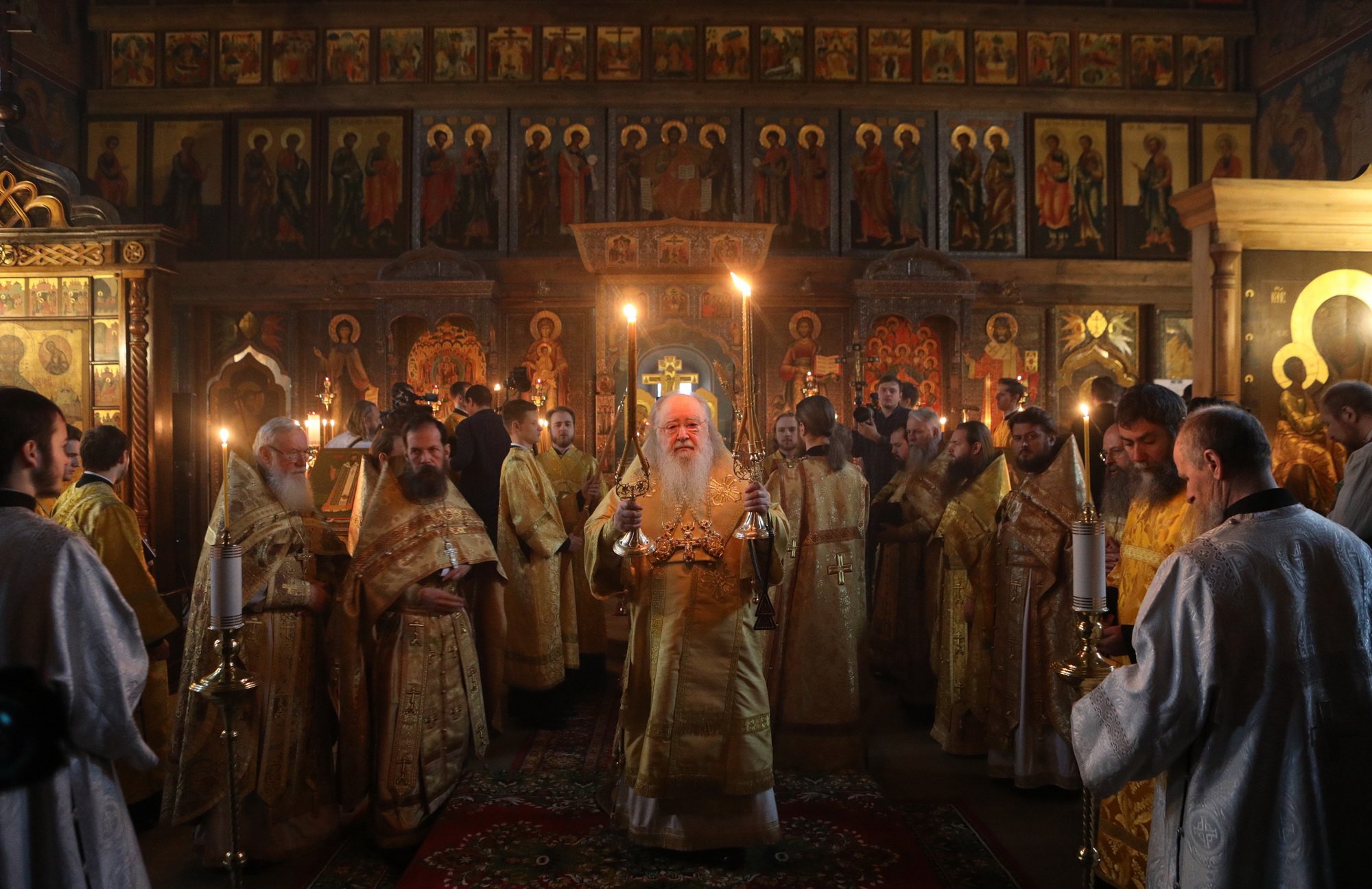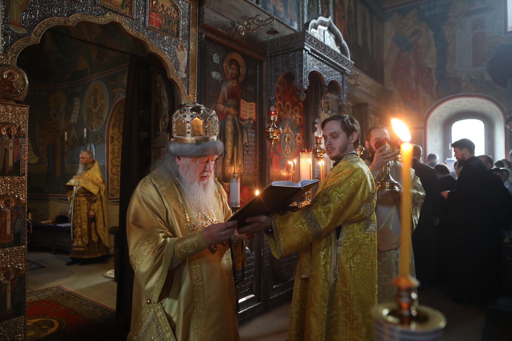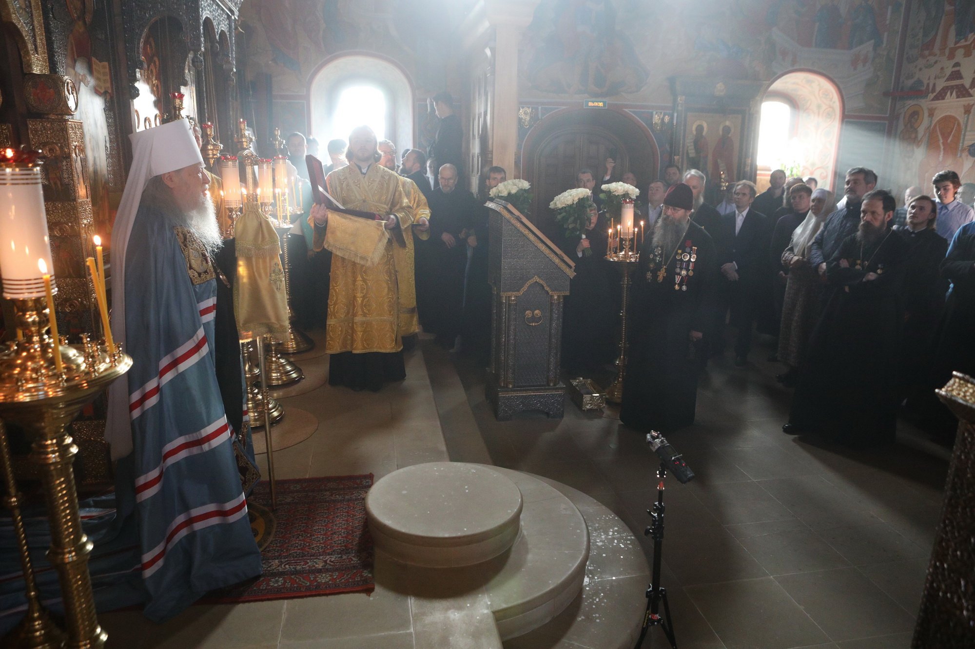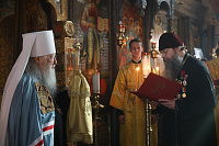 В день престольного праздника и сугубого юбилея храма Архангела Михаила — 330-летия его сооружения и 30-летия возрождения в нем литургической жизни мы с радостью приветствуем Вас, нашего возлюбленного архипастыря, и сердечно благодарим за возможность стать участниками незабываемого пира веры — Божественной литургии, совершенной Вашим Высокопреосвященством по древнерусскому богослужебному чину.