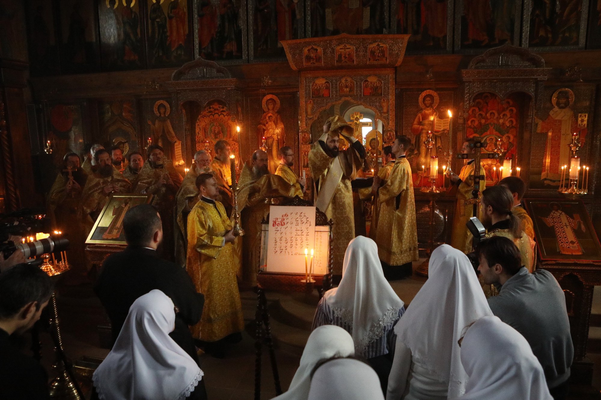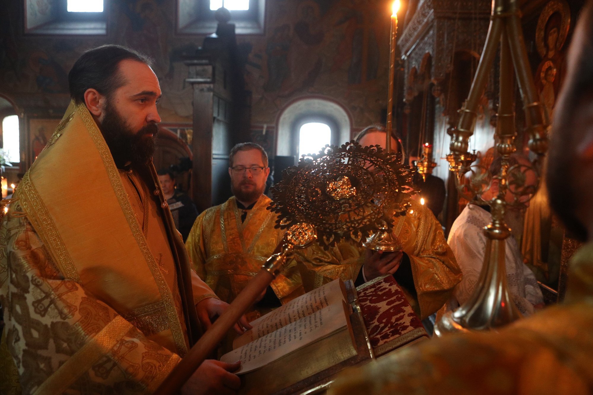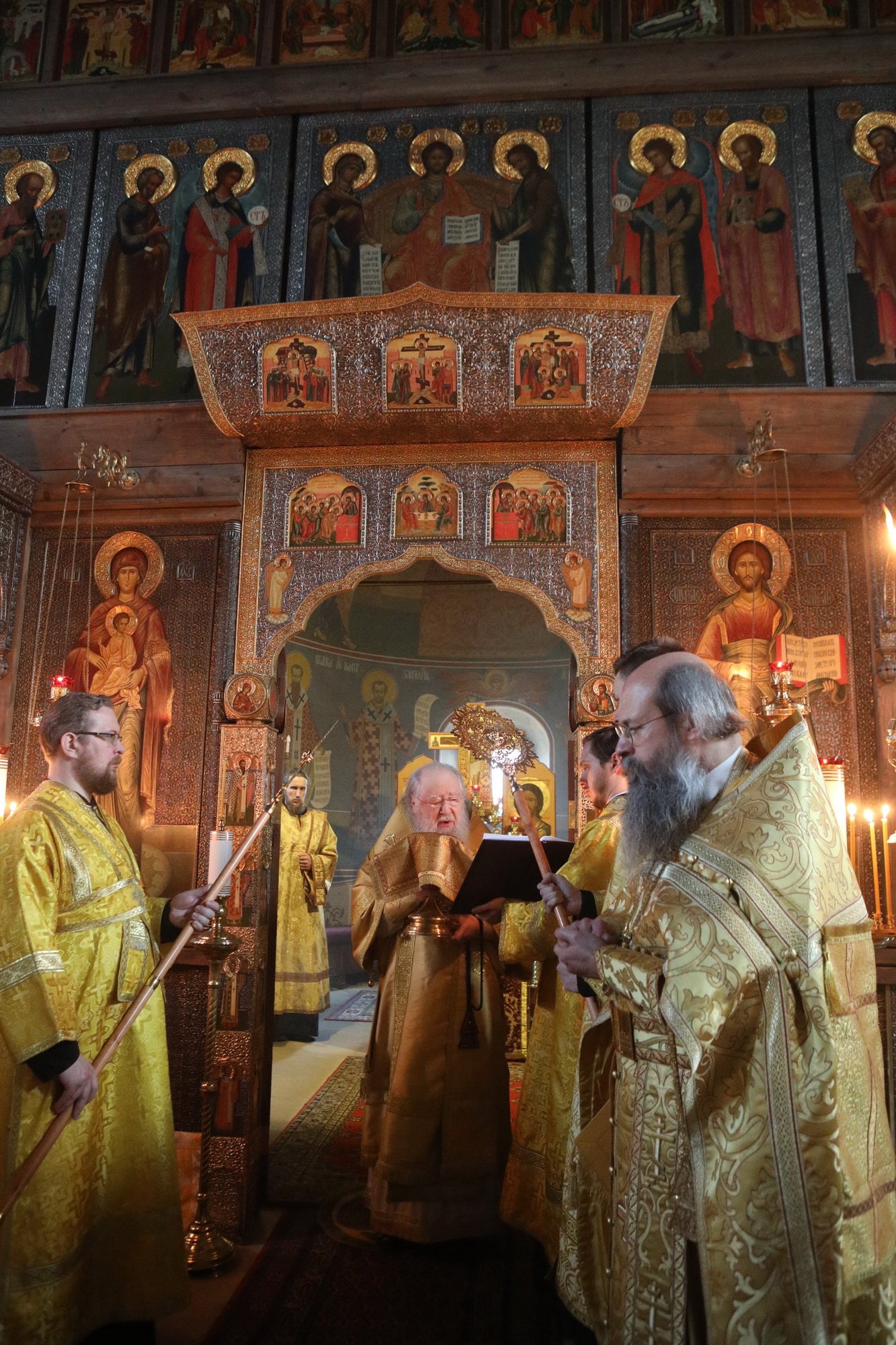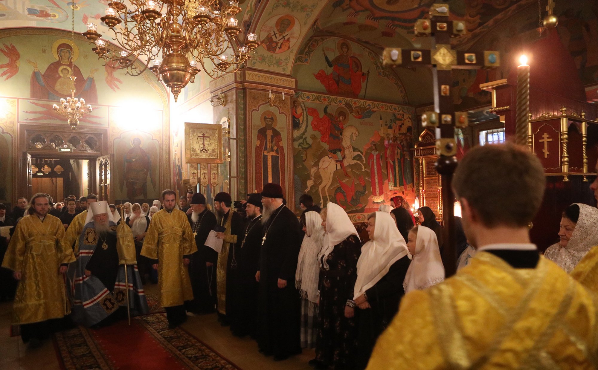 В день престольного праздника и сугубого юбилея храма Архангела Михаила — 330-летия его сооружения и 30-летия возрождения в нем литургической жизни мы с радостью приветствуем Вас, нашего возлюбленного архипастыря, и сердечно благодарим за возможность стать участниками незабываемого пира веры — Божественной литургии, совершенной Вашим Высокопреосвященством по древнерусскому богослужебному чину.