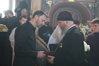 Владыка совершил хиротесию во свещеносцев Вячеслава Демина и Михаила Басевича.
