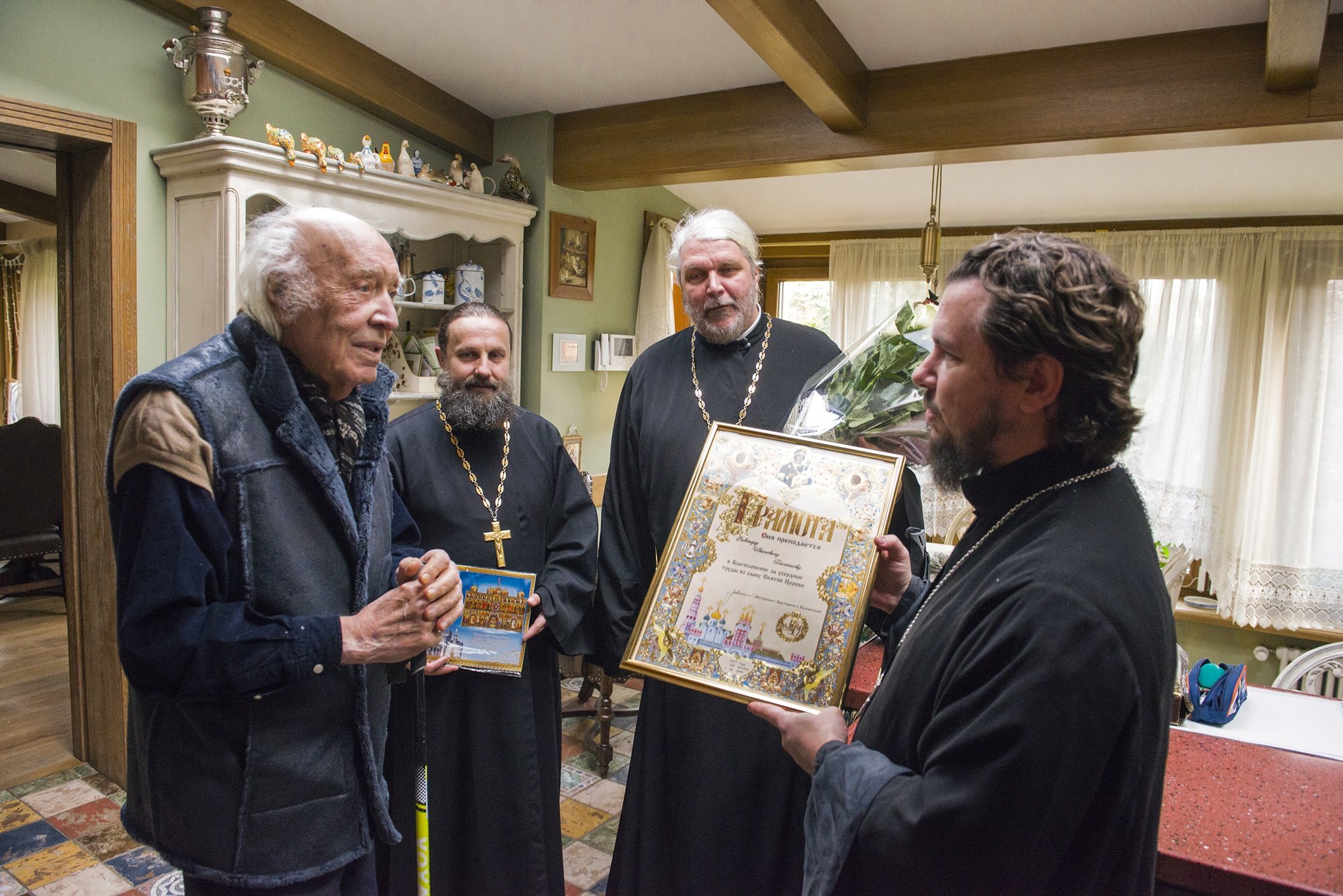 24 декабря исполнилось 95 лет известному диктору, народному артисту, участнику Великой Отечественной войны Виктору Балашову. Виктор Иванович многие годы помогал в строительстве Серафимовского храма г. Голицыно, был организатором благотворительных концертов. В. И. Балашова поздравили настоятель Серафимовского храма священник Иоанн Федоров, клирик храма священник Леонид Савченко и первый настоятель священник Вадим Шинкевич. Юбиляру была вручена благословенная грамота митрополита Ювеналия, которой В. И. Балашов был удостоен за труды на благо Церкви.