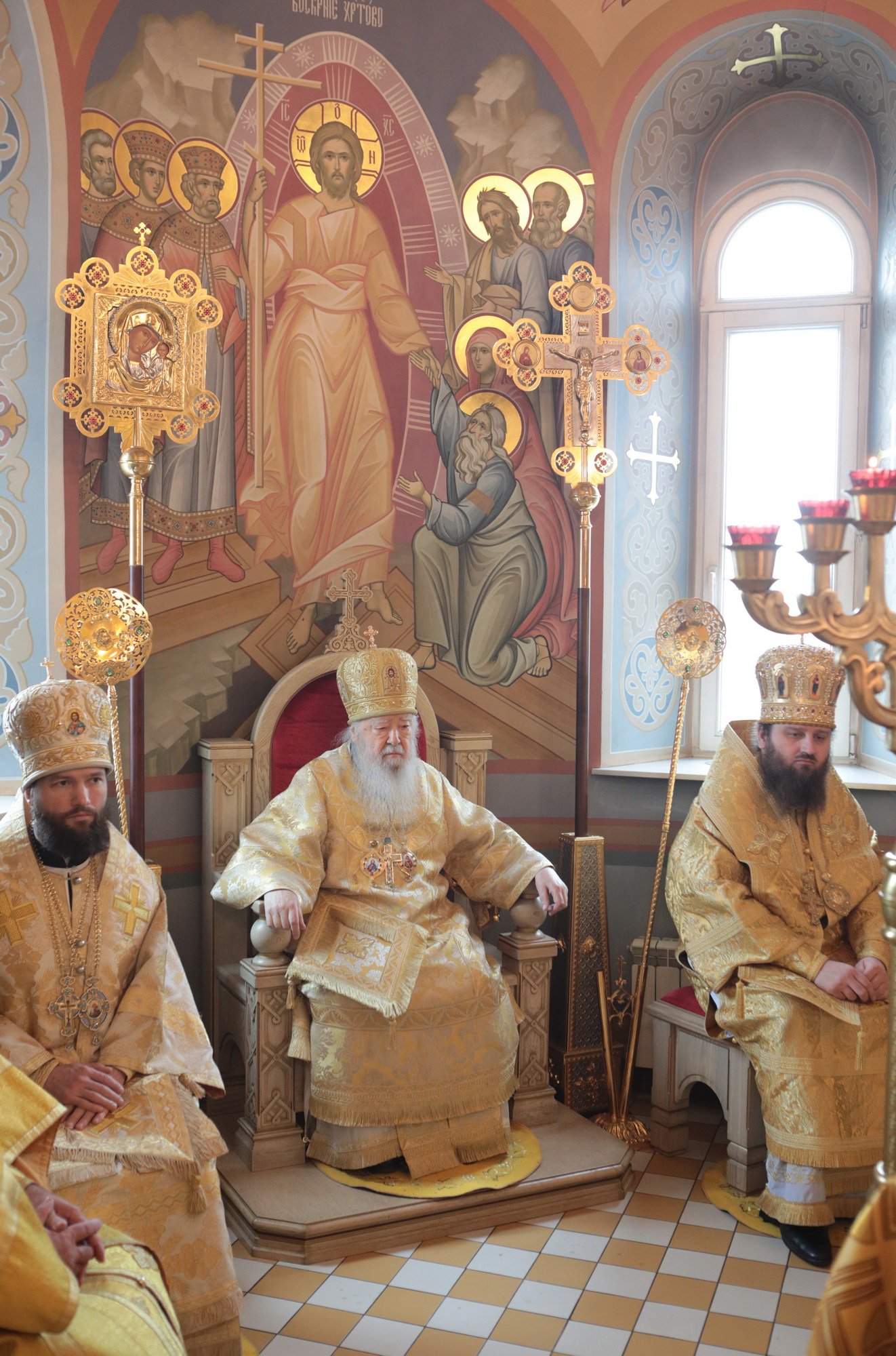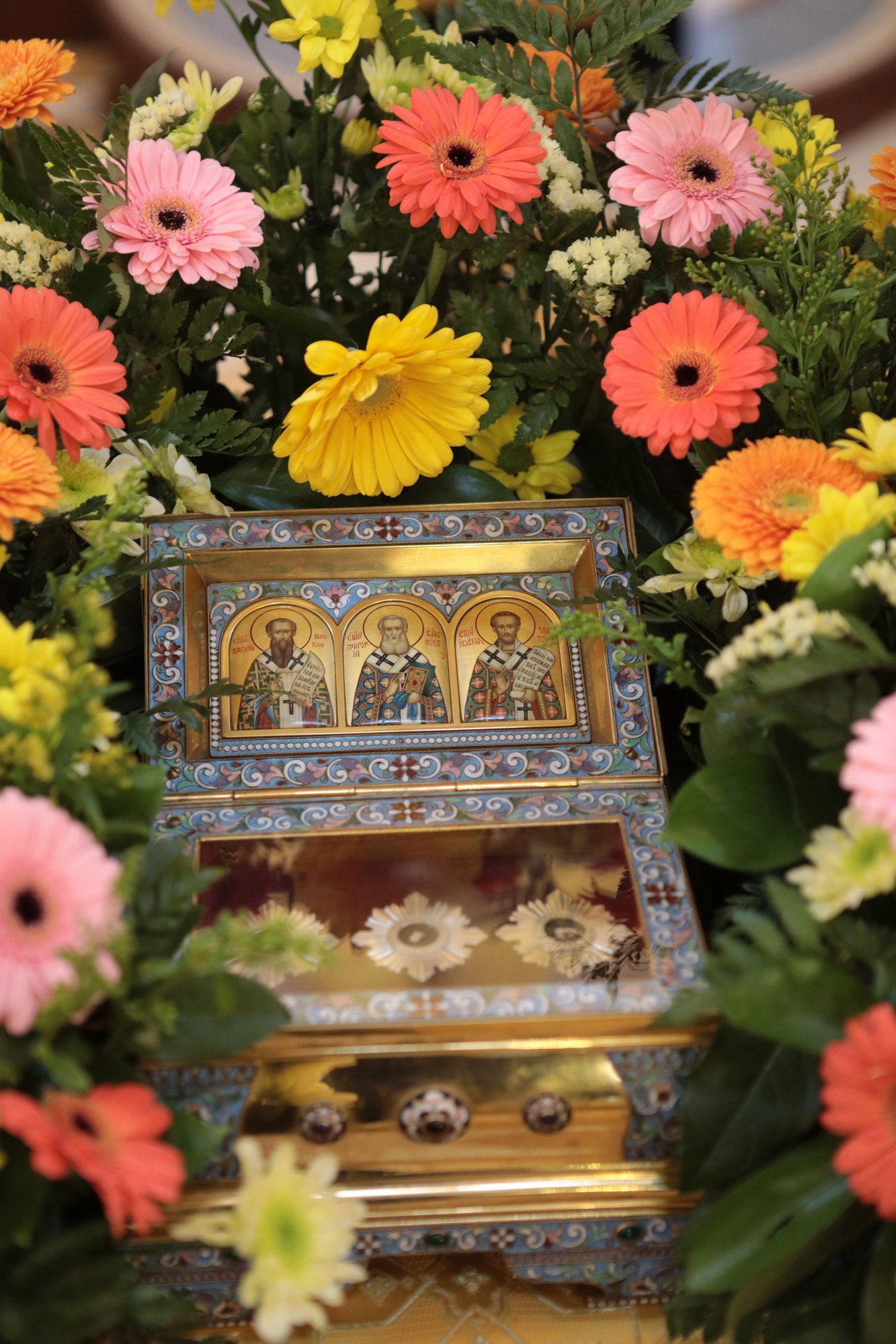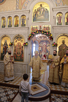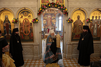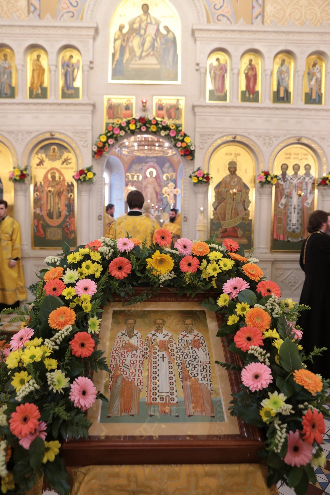 По окончании богослужения перед иконой праздника было совершено славление Вселенским учителям и святителям Василию Великому, Григорию Богослову и Иоанну Златоустому.