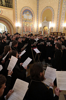 Мы сегодня отмечаем престольный праздник, и в то же время хочется напомнить, что четверть века назад в стенах нашего духовного училища впервые зазвучал хор, а в этом году исполнилось 10 лет Хору духовенства Московской епархии. Думаю, что семинария будет и дальше уделять внимание хору, а хор будет радовать не только коломенцев и жителей нашего Подмосковья, но и многих людей там, где хору еще придется выступать. И я хотел бы, чтобы сейчас этот хор сам себе пропел «многая лета!»