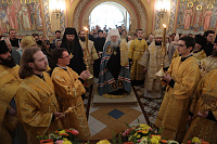Песнопения Божественной литургии исполняли Хор духовенства Московской епархии под управлением священника Сергия Голева и хор семинарии под управлением диакона Николая Глухова.