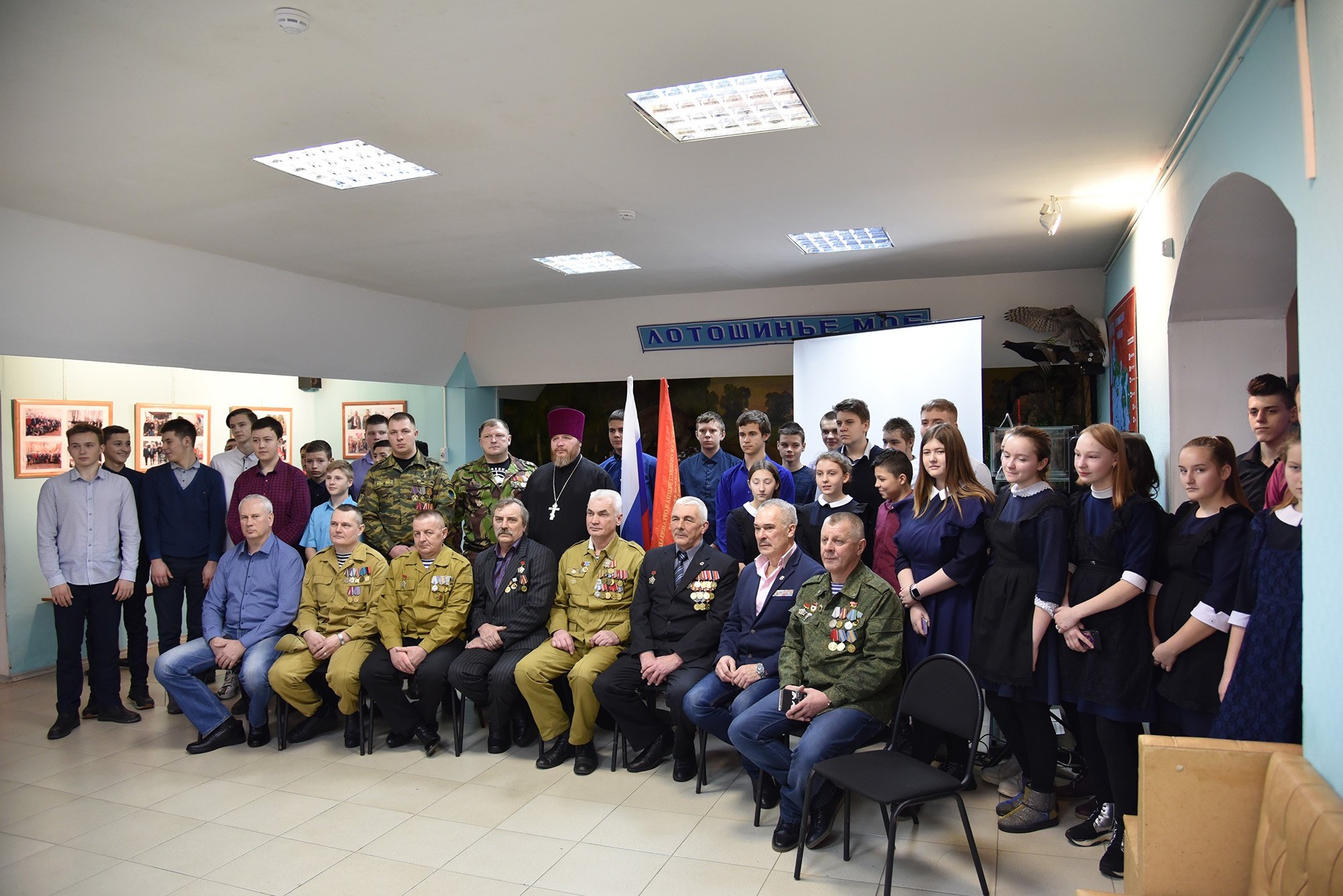13 февраля в Лотошинском историко-краеведческом музее состоялась тематическая встреча с воинами-интернационалистами – ветеранами Афганской войны и других локальных войн и военных конфликтов «Долг. Честь. Память», посвященная 31-й годовщине вывода советских войск из Афганистана. Мероприятие посетили учащиеся Лотошинской средней школы № 1 и Ушаковской средней школы. Перед собравшимися выступил председатель Лотошинского районного отделения Всероссийской общественной организации «Боевое братство» Михаил Быков. С приветственным словом к участникам встречи обратился ответственный за взаимодействие с Вооруженными силами в Лотошинском благочинии священник Сергий Жарков. В завершение мероприятия участники встречи возложили цветы к мемориалу, расположенному в центральном сквере поселка.