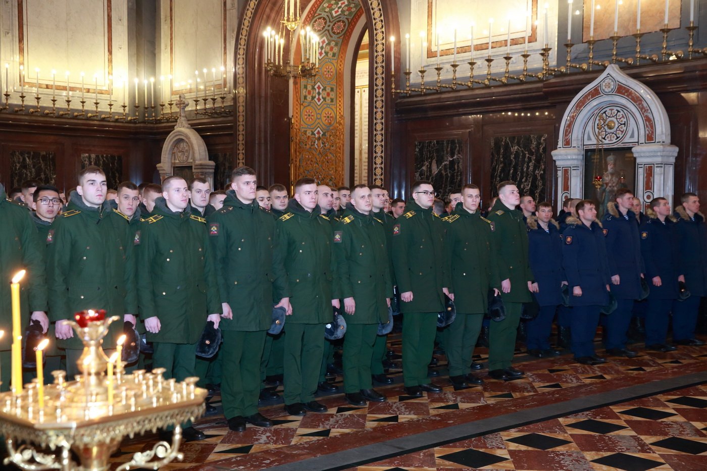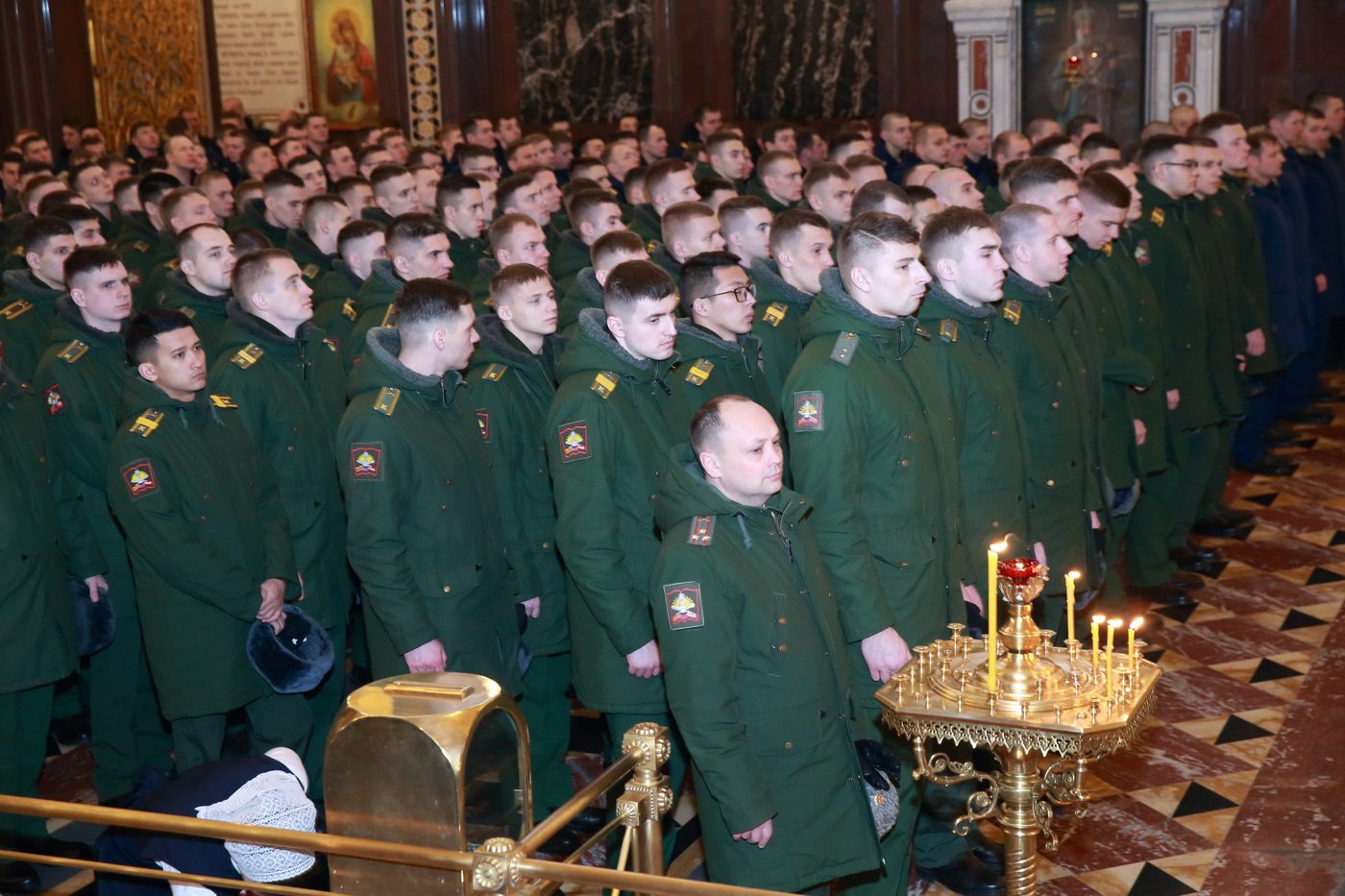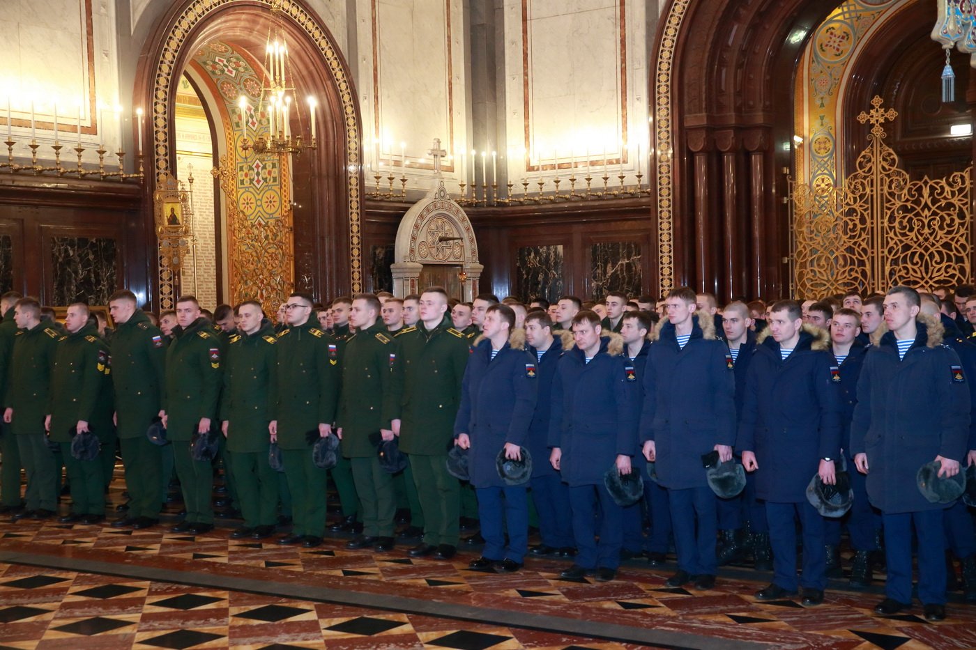 За богослужением молились родственники погибших, военнослужащие 38-й бригады управления Воздушно-десантных войск и 45-й отдельной бригады специального назначения, представители Военного университета Министерства обороны, члены Всероссийского детско-юношеского военно-патриотического общественного движения «Юнармия».