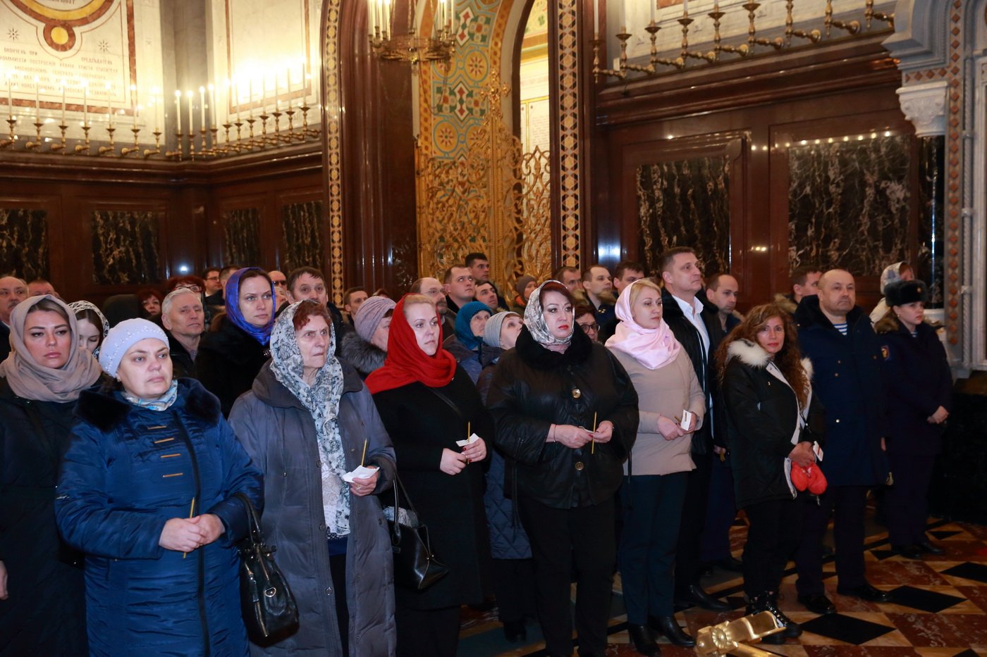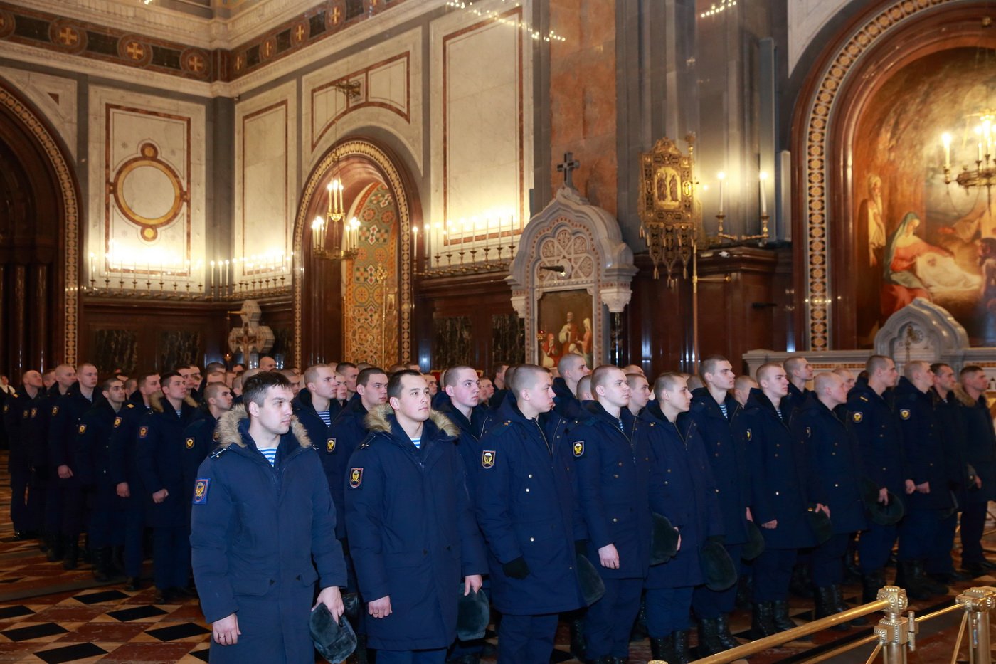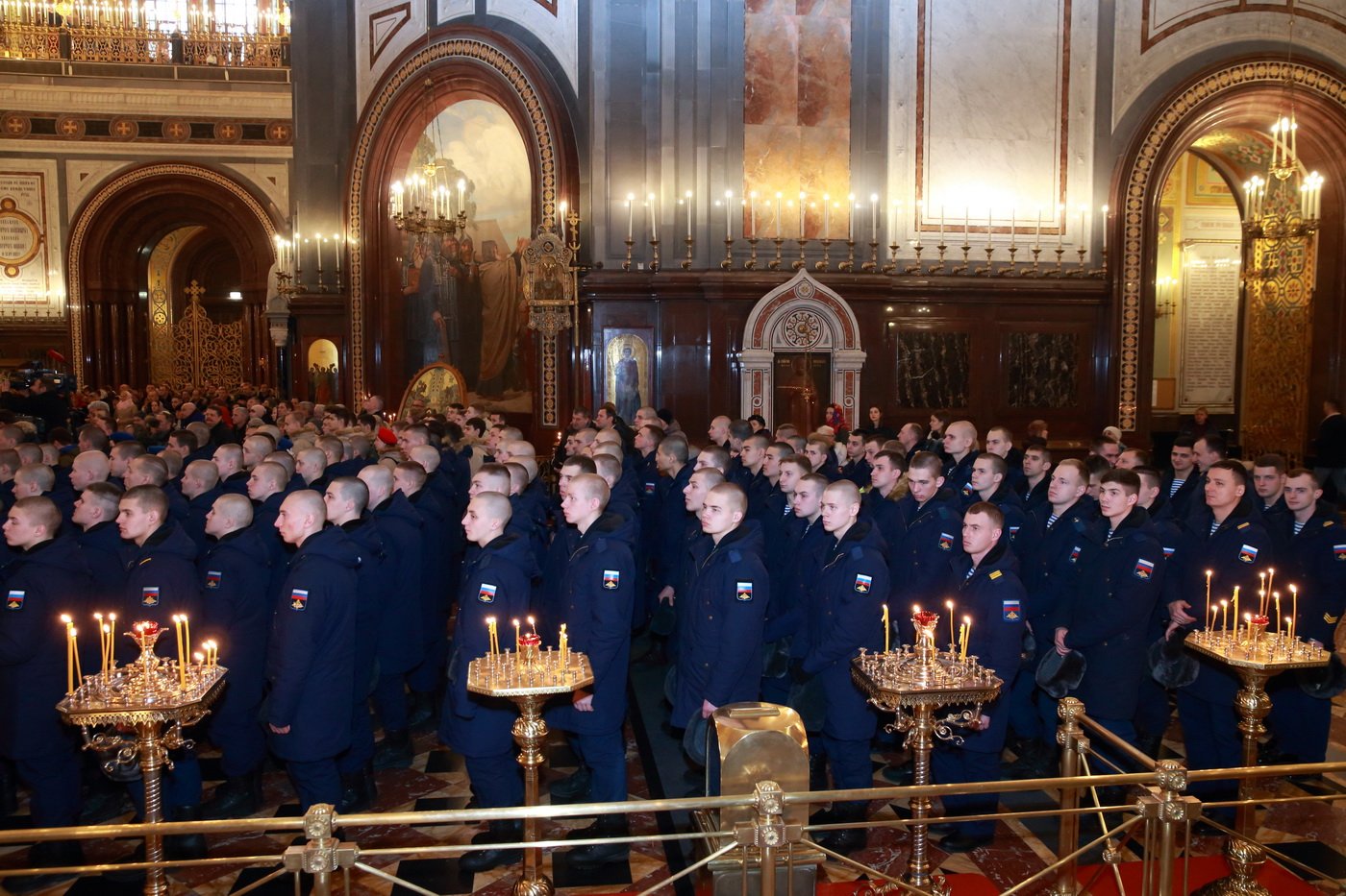 За богослужением молились родственники погибших, военнослужащие 38-й бригады управления Воздушно-десантных войск и 45-й отдельной бригады специального назначения, представители Военного университета Министерства обороны, члены Всероссийского детско-юношеского военно-патриотического общественного движения «Юнармия».