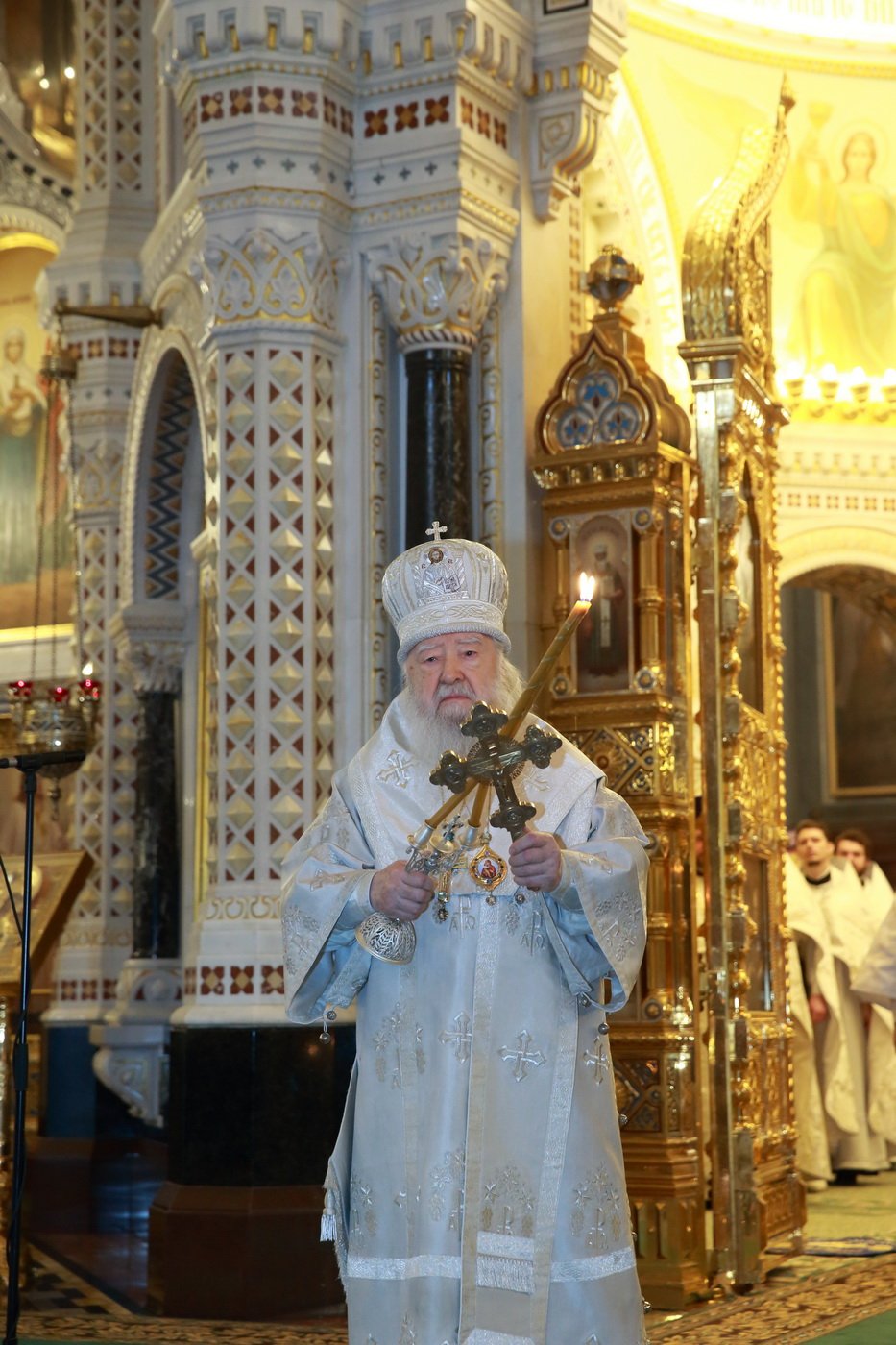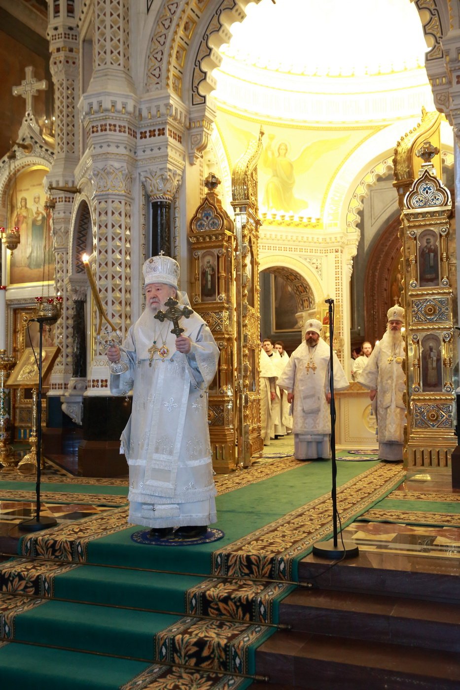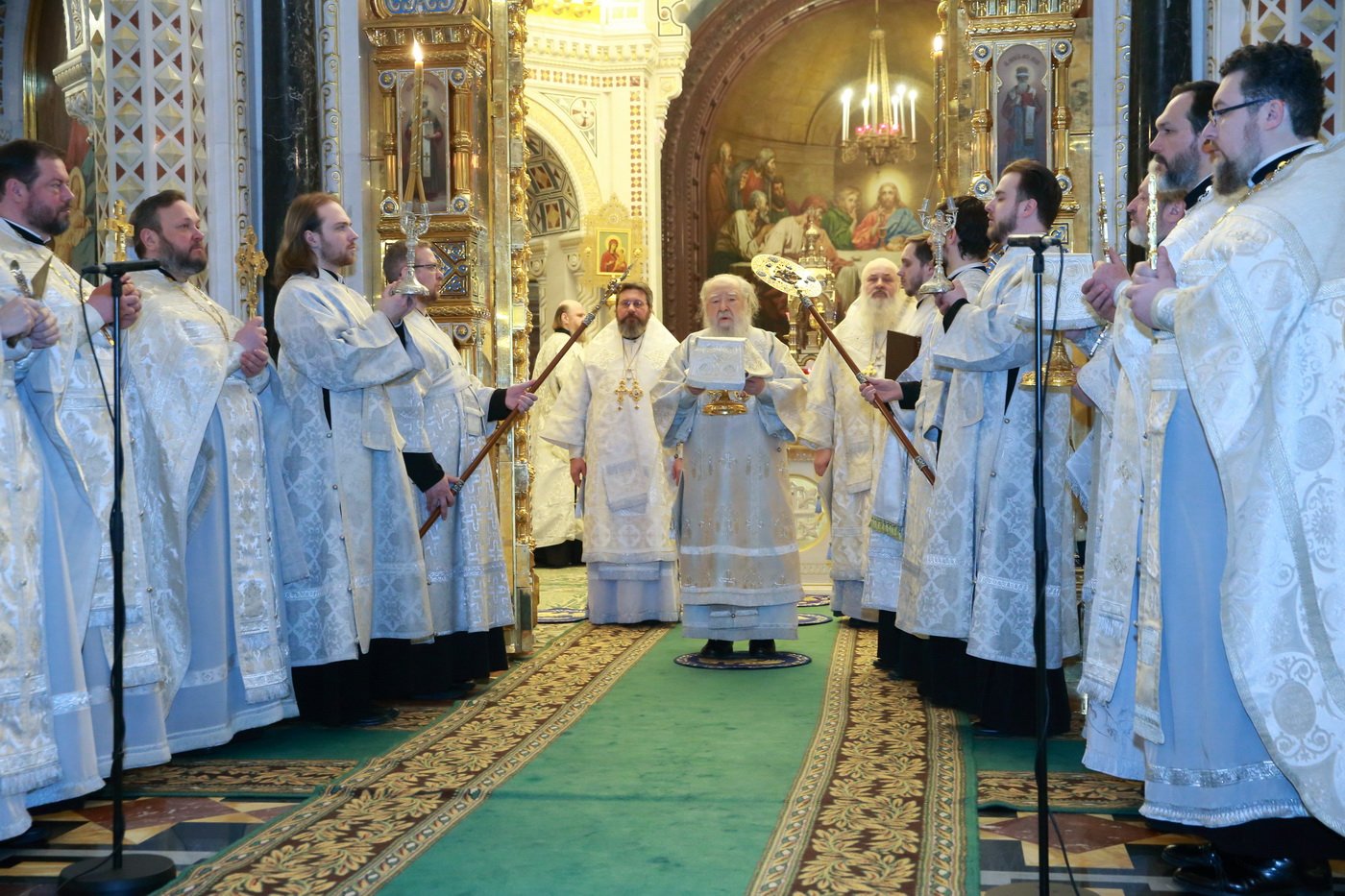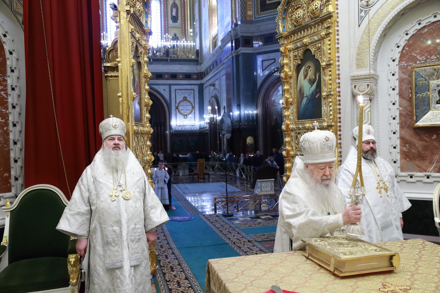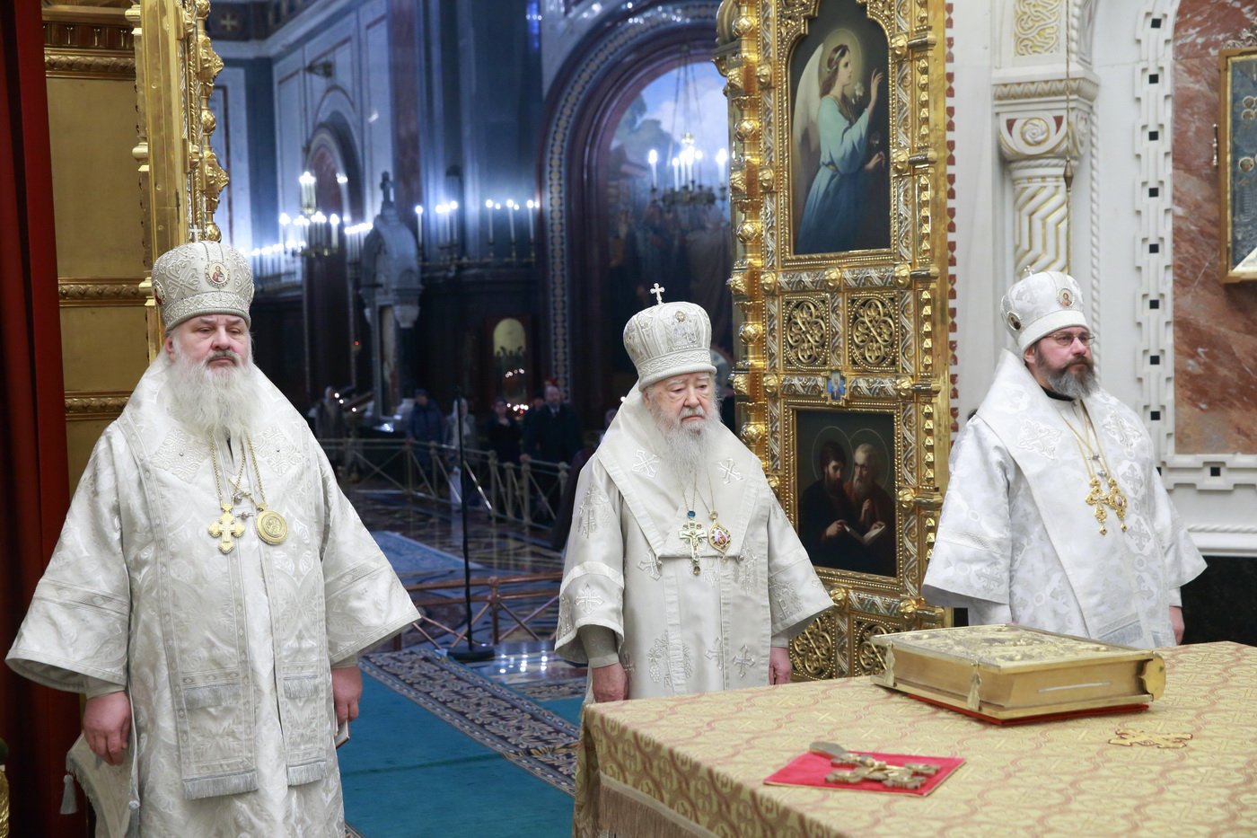 Его Высокопреосвященству сослужили епископ Видновский Тихон, председатель Синодального отдела по взаимодействию с Вооруженными силами и правоохранительными органами епископ Клинский Стефан, ключарь Храма Христа Спасителя протоиерей Михаил Рязанцев, духовенство города Москвы.