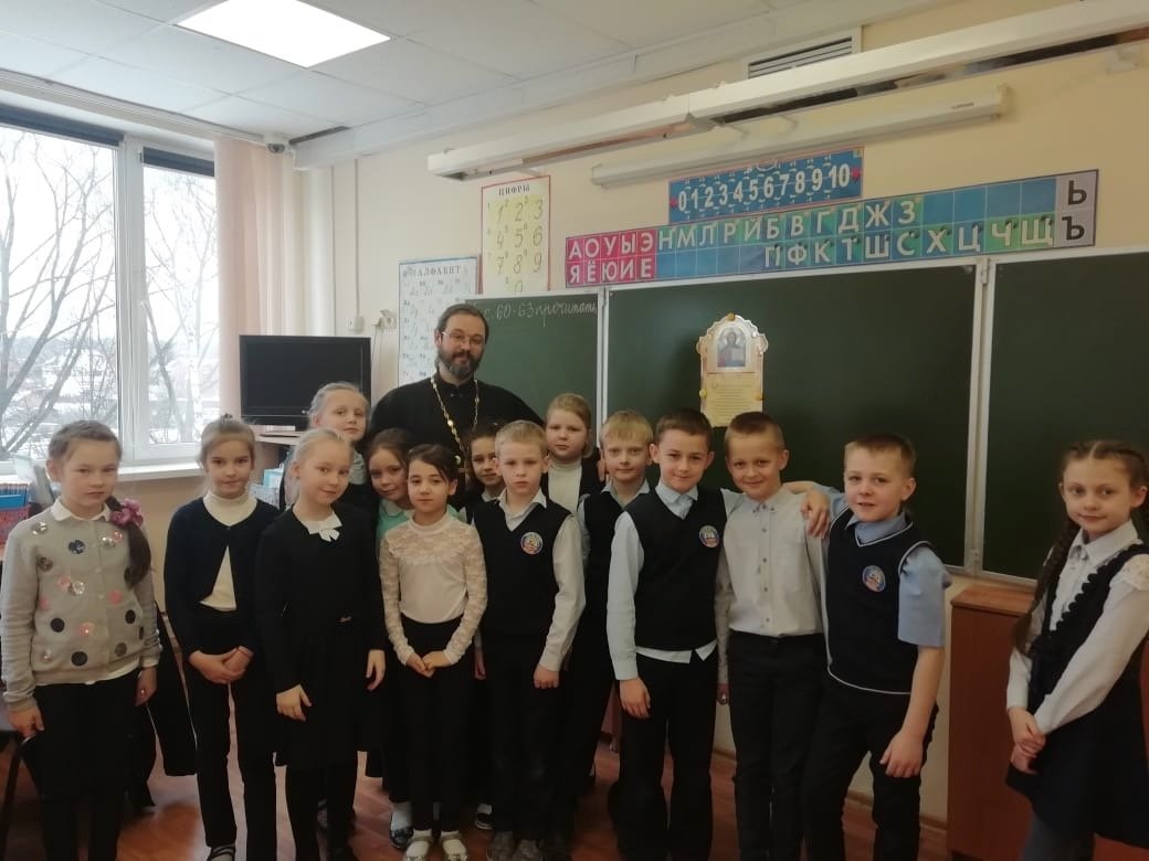На приходе Пантелеимоновского храма поселка Львовский настоятель храма священник Димитрий Воюев провел встречу с учащимися Львовской средней общеобразовательной школы №4, посвященную Дню православной книги.