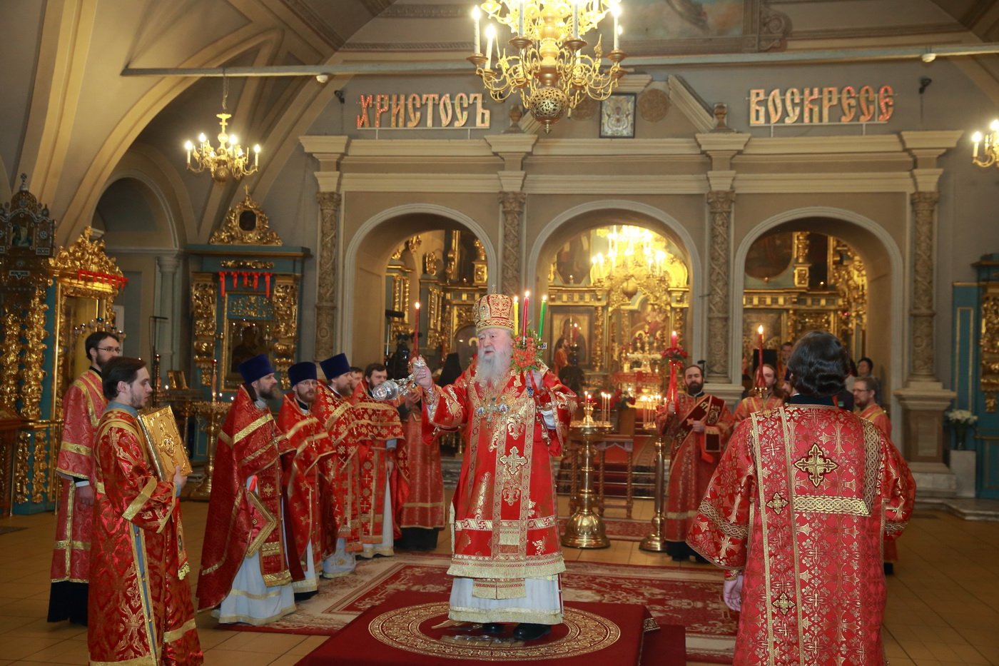 Возлюбленные! Сердечно поздравляю вас с великим и спасительным праздником Святой Пасхи! В этот день наша проповедь — самая краткая, она состоит всего из двух слов. С этой проповедью я обращаюсь к вам: Христос воскресе! На всех вас призываю Божие благословение!Прямую трансляцию богослужения осуществлял телеканал «Подмосковье 360».