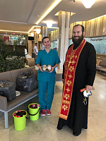 19 апреля настоятель Знаменского храма деревни Марьино священник Иоанн Островский посетил больных в клинической больницы МЕДСИ, в которой лечат больных с коронавирусной инфекцией. Соблюдая все необходимые меры предосторожности, отец Иоанн поддержал пациентов и подарил им освященные куличи и яйца.