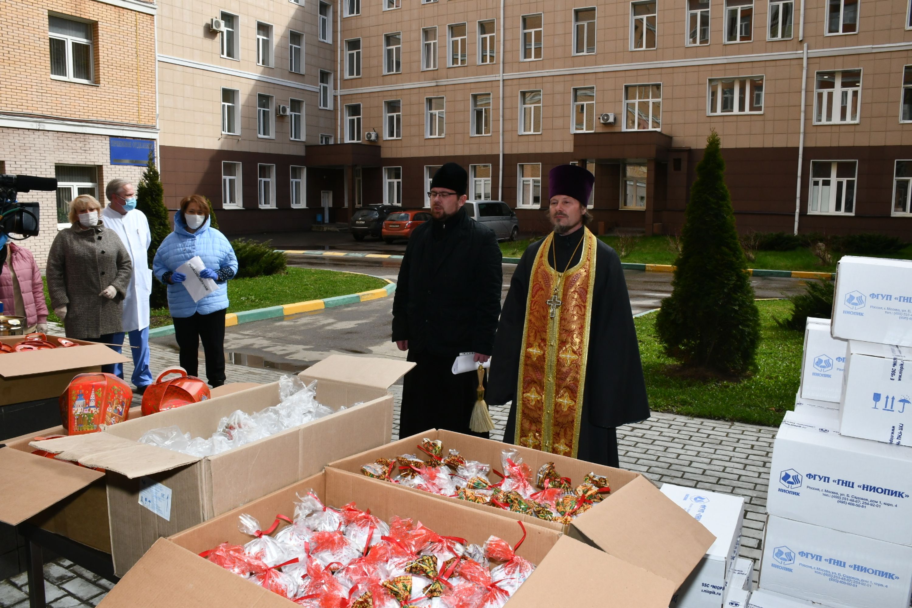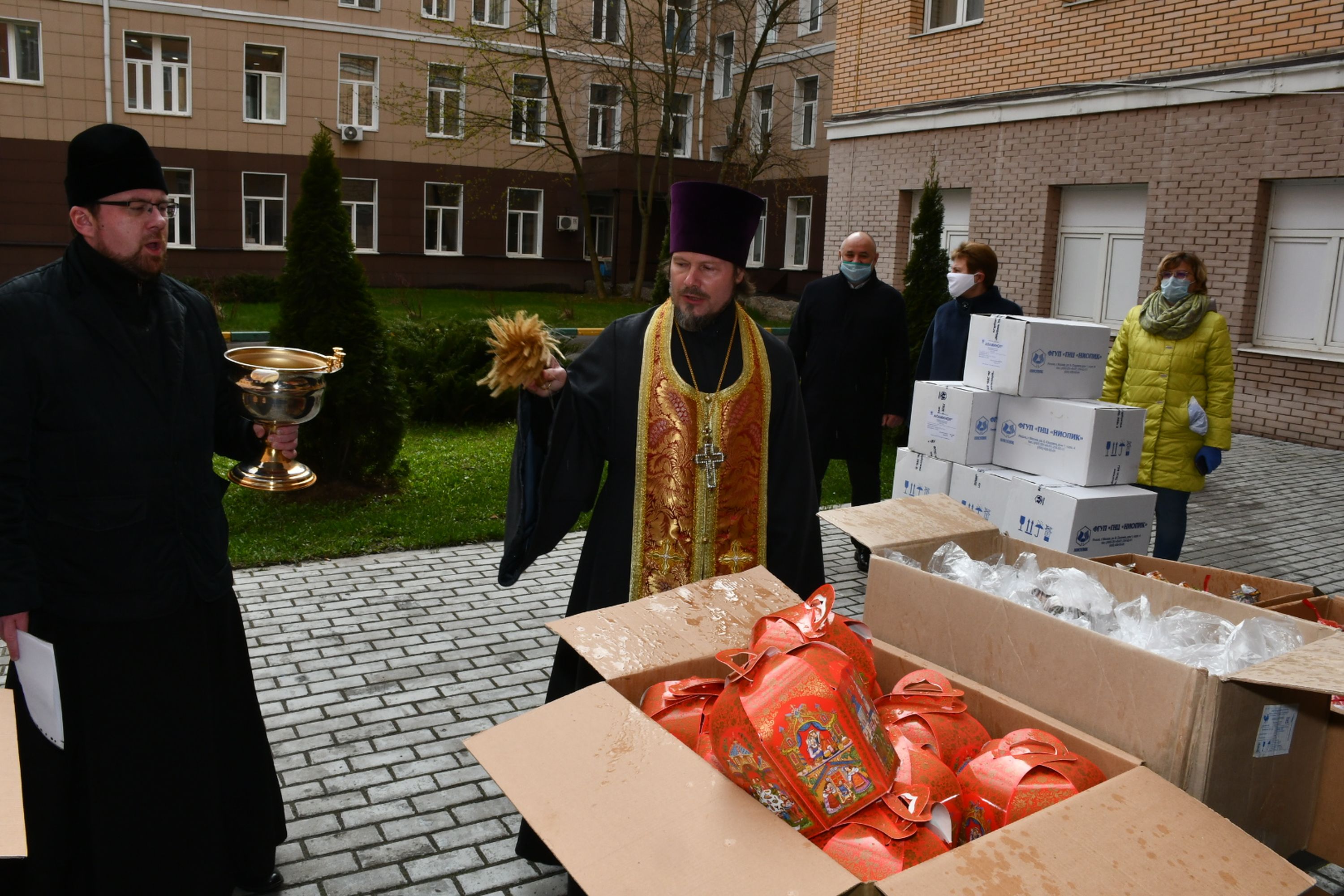 20 апреля благочинный Долгопрудненского церковного округа, председатель Епархиального отдела по работе с медицинскими учреждениями протоиерей Андрей Хмызов совершил освящение куличей, пожертвованных городскими предпринимателями медицинскому персоналу Долгопрудненской центральной городской больницы. В благотворительной акции приняли участие глава г. Долгопрудный А.Д. Кочетинина, главный врач лечебного учреждения С.Ф. Торубаров.