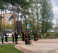 В начале церемонии была совершена панихида о павших воинах и всех потрудившихся ради Великой Победы. Затем участники почтили минутой молчания память всех павших в боях, и возложили цветы к мемориалу воинской славы.