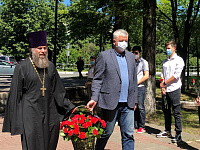 В микрорайоне Железнодорожный городского округа Балашиха в возложении венков к обелиску погибшим защитникам Отечества в сквере Победы участвовал настоятель Преображенского храма в Саввино протоиерей Виталий Кулешов.