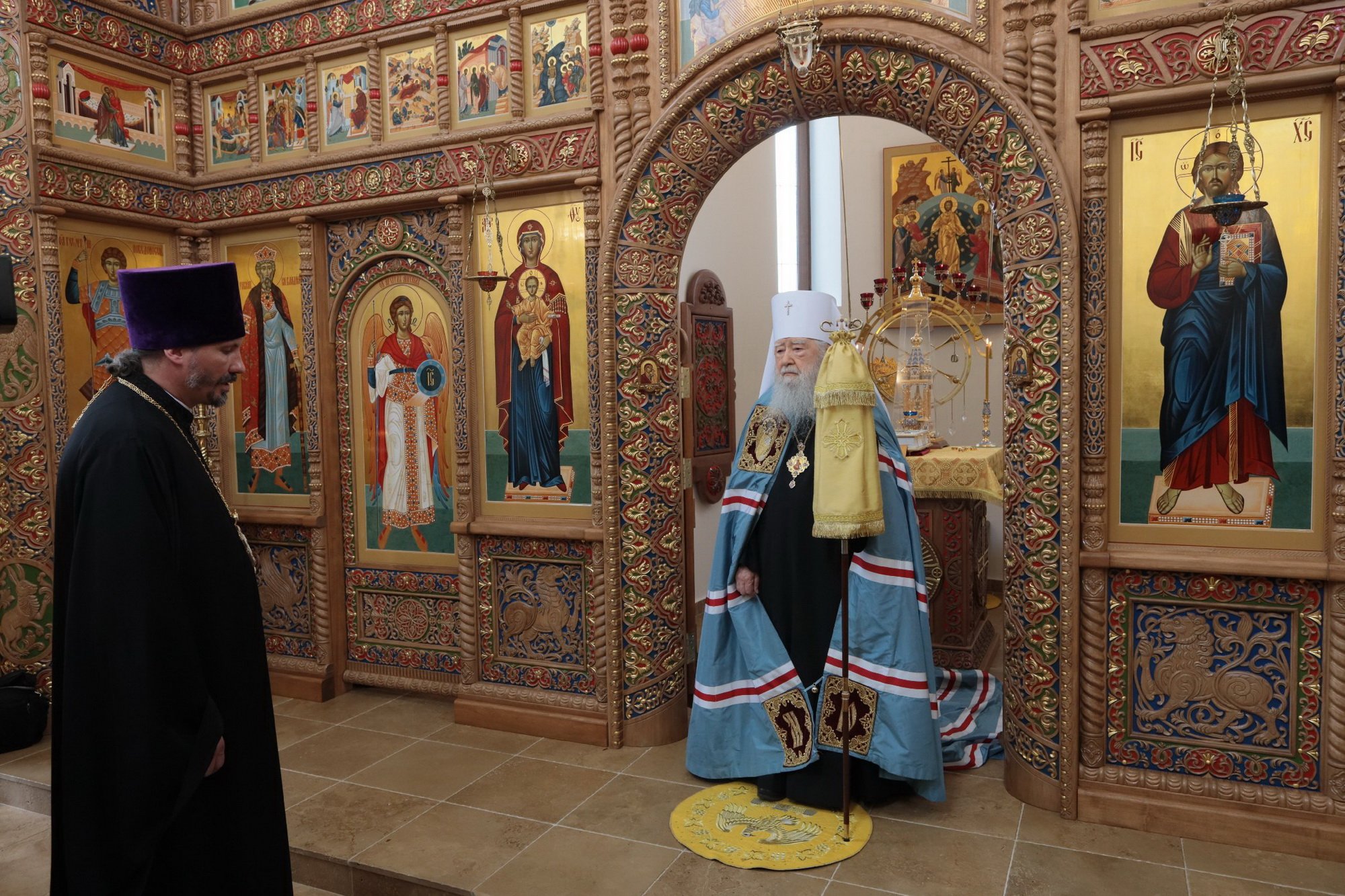 По окончании Божественной литургии благочинный Зарайского церковного округа протоиерей Петр Спиридонов обратился к митрополиту Ювеналию с приветственным словом: