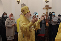 После сугубой ектении Владыка вознес молитву, чтомую во время распространения вредоносного поветрия. На богослужении было совершено молитвенное поминовение болящих священнослужителей и мирян Русской Православной Церкви и вознесены прошения о упокоении приснопоминаемого Василия Никитича Степнова.