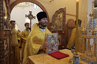 По заамвонной молитве было совершено славление перед иконой святителя Василия, епископа Рязанского.