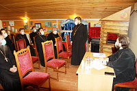 Благочинный епископ Луховицкий Петр ознакомил собравшихся с циркулярами митрополита Ювеналия. Было заслушано сообщение о ходе ремонтных работ в Борисоглебском храме города Коломны и Никитском храме села Северское. Обсуждалась подготовка празднования 160-летия со дня рождения священноисповедника Феодосия, епископа Коломенского.