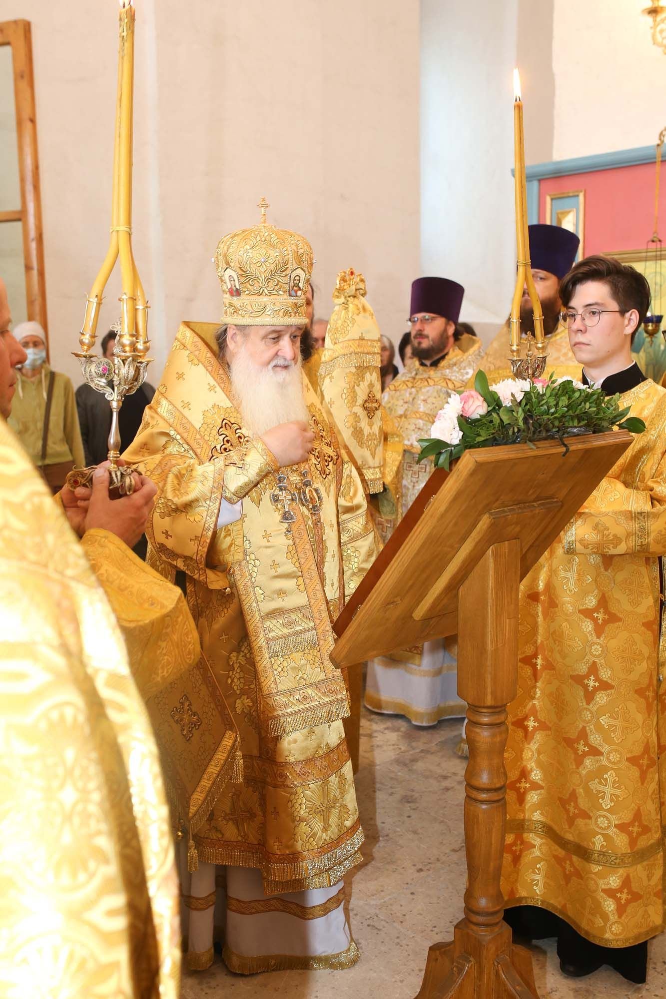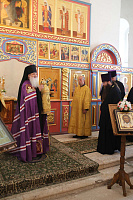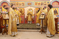 Божественную литургию по благословению митрополита Ювеналия возглавил викарий Московской епархии епископ Серпуховской Роман. Его Преосвященству сослужили благочинный Волоколамского церковного округа священник Михаил Поляков и духовенство благочиния. По окончании богослужения Владыка Роман обратился к присутствующим с архипастырским словом и передал верующим благословение митрополита Ювеналия.