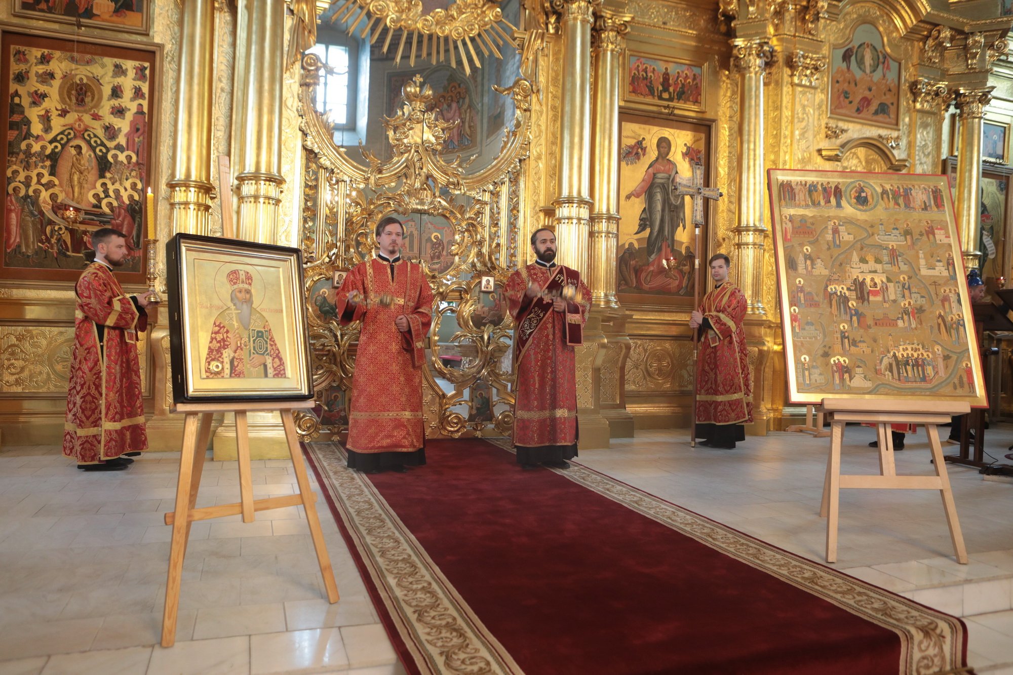 Его Высокопреосвященству сослужили ректор Коломенской духовной семинарии епископ Зарайский Константин, благочинный церквей города Коломны и Коломенского округа епископ Луховицкий Петр, почетный настоятель Успенского собора протоиерей Николай Качанкин, игумен Старо-Голутвина мужского монастыря Варлаам (Горбунов), настоятель Успенского собора священник Илия Лукьянов, духовенство Коломенского благочиния.