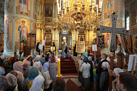 На богослужении молились игумения Свято-Троицкого Ново-Голутвина монастыря Ксения (Зайцева) и игумения Успенского Брусенского монастыря Екатерина (Варфоломеева).