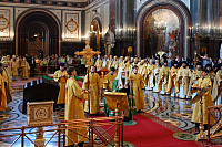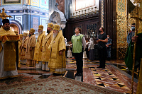В день праздника Божественную литургию в кафедральном соборном Храме Христа Спасителя в Москве совершил Святейший Патриарх Московский и всея Руси Кирилл.