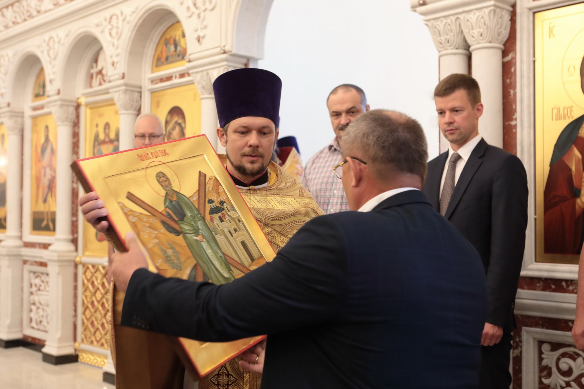 Сергей Меликов передал в подарок храму икону прп. Сергия Радонежского, а также вместе с отцом Максимом вручил награды тем, кто жертвовал средства на возведение и принимал участие в строительстве. Икону апостола Андрея Первозванного подарил храму исполнительный директор благотворительного фонда «Патриот» Юрий Яковлев.