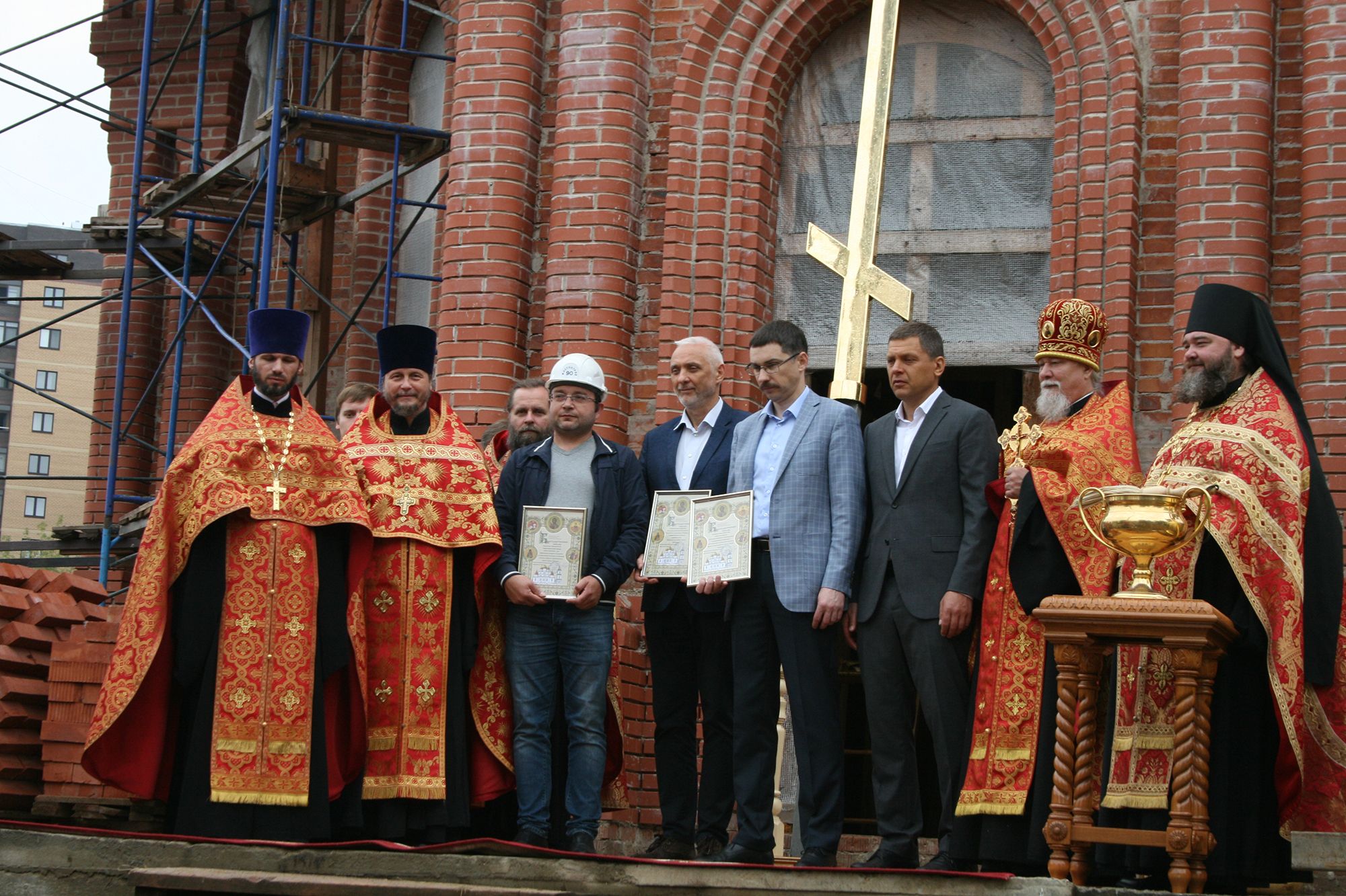 26 августа на храм великомученика Георгия Победоносца г. Дмитрова были водружены купол и крест. Чин освящения креста совершили: благочинный церквей Дмитровского округа протоиерей Афанасий Чорногуз в сослужении благочинного Рогачевского церковного округа священника Сергия Сафронова, а также духовенства Дмитровского, Яхромского и Рогачевского благочиний. После освящения купол и крест были подняты и установлены на храм. На мероприятии присутствовали глава Дмитровского городского округа И.И. Поночевный, представители администрации, кадеты, благотворители храма.