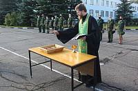 27 августа благочинный церквей Королёвского округа священник Димитрий Поповский посетил воинскую часть в рамках месячника сплочения воинских коллективов и предупреждения нарушений уставных правил взаимоотношений между военнослужащими. На общем сборе отец Димитрий освятил резную икону святителя Николая Чудотворца, которая была сделана и подарена отцом одного из призывников. Отец Димитрий пообщался с офицерским составом и военнослужащими срочной службы.