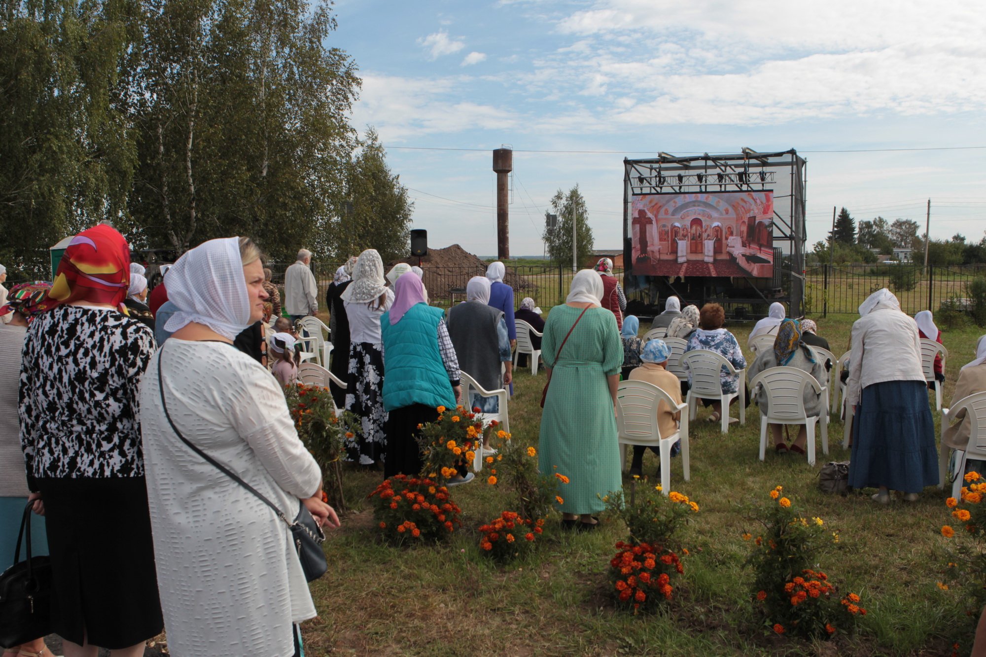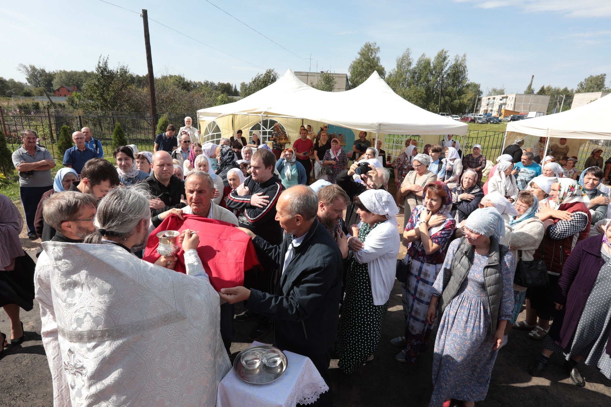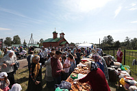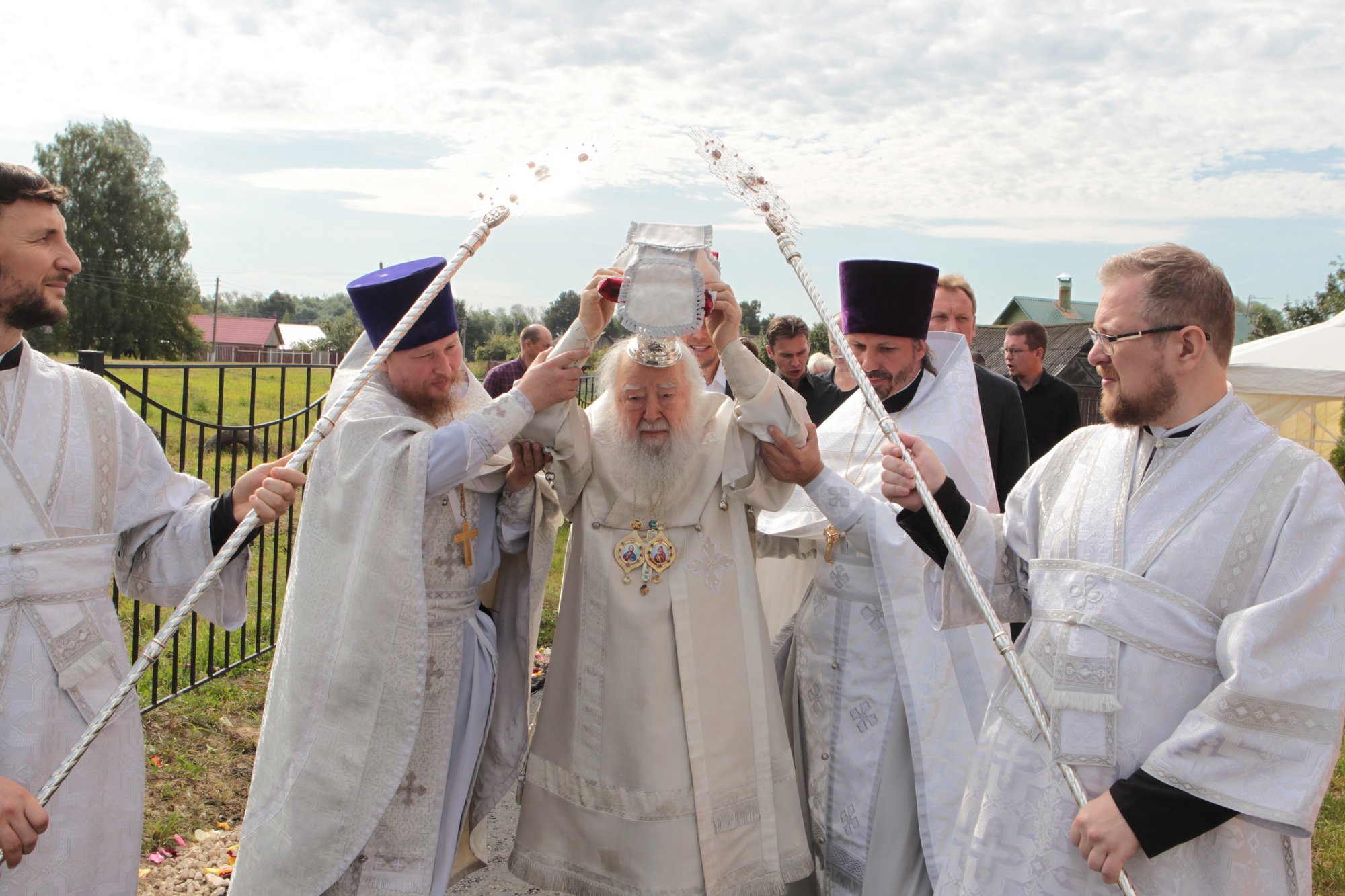 Каждый православный христианин надеется наследовать Царство Божие, и сегодняшнее Евангелие повествует о том, какие условия необходимо соблюсти, чтобы этого достичь. Один богатый юноша спрашивал Христа: «что сделать мне доброго, чтобы иметь жизнь вечную?» (Мф. 19:16) Христос ответил ему: «соблюди заповеди» (Мф. 19:17), —на что юноша отвечал, что все это он сохранил от юности. Тогда Христос ему говорит: «Если хочешь быть совершенным, пойди, продай имение твое и раздай нищим; и будешь иметь сокровище на небесах; и приходи и следуй за Мною» (Мф. 19:21). Что произошло с этим благочестивым юношей? Он «отошел с печалью» (Мф. 19:22), потому что был не в силах своим имением послужить бедным. Как радостно звучит это Евангелие сегодня, когда мы освящаем храм в честь Богоматери! Трудно было бы даже надеяться, чтобы жители этого села на свои средства смогли построить здесь храм. С уверенностью можно сказать, что вы, жертвователи, которые часть своего имущества отдали для храма и Бога, наследуете Царство Божие. Я поздравляю вас с праздником и благодарю за то, что у вас было желание отдать свои средства на возведение храма. Он будет памятником вашего благочестия, и пусть Господь всем вам воздаст по Своей милости! Конечно, невозможно по-человечески чем-то вам воздать, но у нас есть обычай награждать жертвователей и строителей, и поэтому я прошу огласить имена награжденных. А перед этим я хотел бы принести свой малый дар — святые сосуды для совершения Божественной литургии. Когда вы будете на них совершать Евхаристию, поминайте и мое недостоинство.