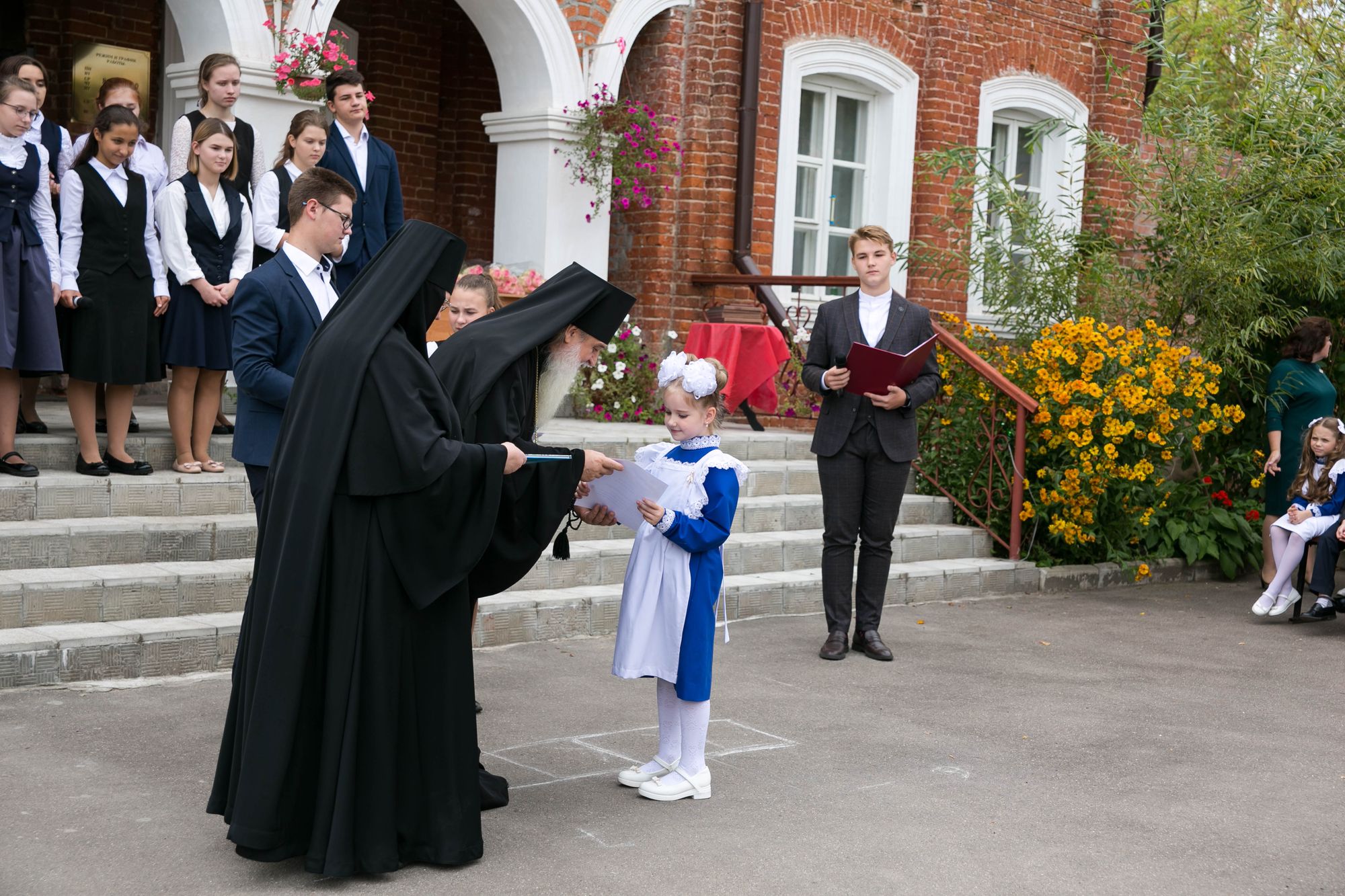 В заключение праздничных мероприятий Владыка посетил Православную гимназию во имя прп. Варлаама Серпуховского. Учащиеся показали зрителям концерт. Затем состоялось награждение учащихся – победителей конкурса сочинений, посвященного юбилею монастыря.
