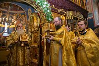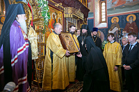 По окончании богослужения епископ Роман обратился к сестрам обители и прихожанам с приветственным словом и передал им благословение митрополита Ювеналия, а также передал от него в дар обители Казанскую икону Божией Матери. Затем епископ Роман вручил епархиальные награды насельницам, клирикам, сотрудникам и благотворителям монастыря.