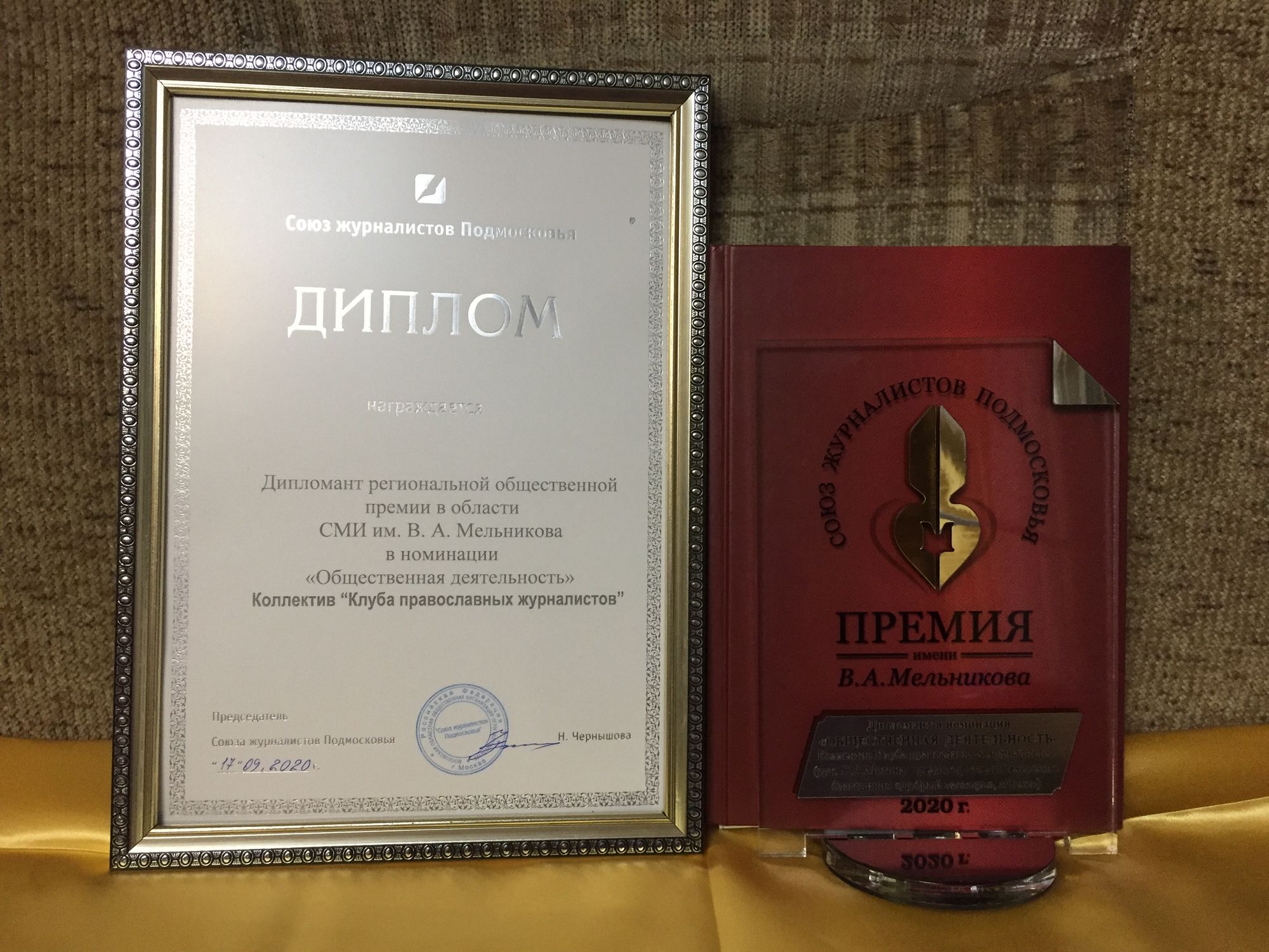 17 сентября в Раменском прошла церемония вручения журналистской премии имени Виктора Мельникова. В мероприятии приняли участие председатель союза журналистов Московской области Наталья Чернышова и заместитель руководителя главного управления по информационной политике Подмосковья Елена Чернова. В номинации «Общественная деятельность» победителем стал Чеховский клуб православных журналистов, действующий при газете Чеховского благочиния «Добрый пастырь». Среди многих проектов этого клуба жюри конкурса особенно отметило проект, связанный с возрождением памяти о чеховской художнице Наталии Гольдиной, чьи работы, выполненные в технике маркетри, украшают целый ряд храмов Чеховского благочиния. В этом году отмечалось 10-летие премии, но православная журналистика номинируется на этом смотре журналистского мастерства впервые.