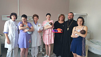 Затем отец Виктор с сотрудниками Православного медико-просветительского центра «Жизнь» и главный врач Т. Б. Шаврак посетили рожениц и вручили им памятные подарки.