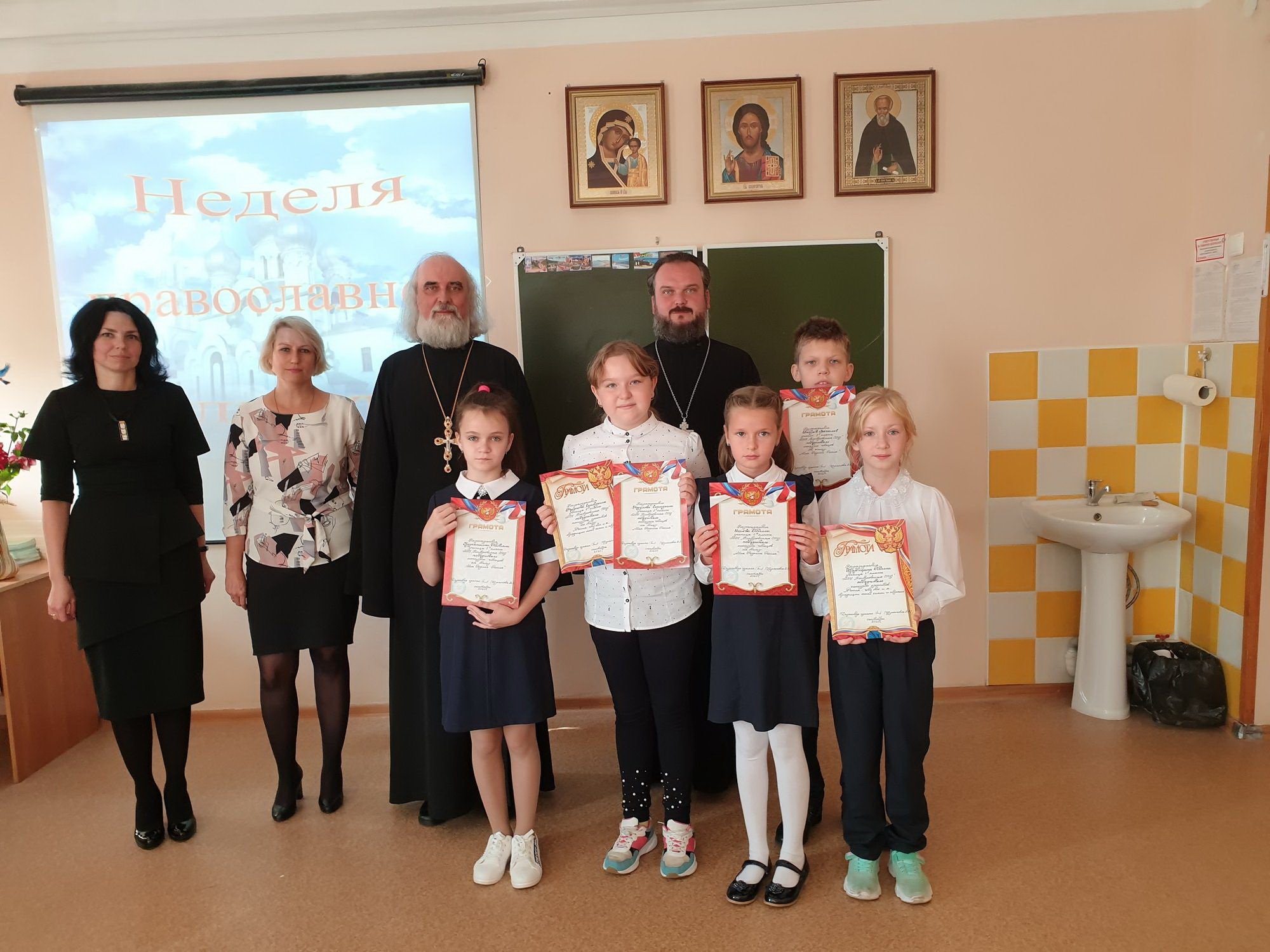 С 21 по 25 сентября в Костровской средней школе проходила тематическая неделя по курсу «Основ православной культуры» - «Россия – это ты и я». Открылась она концертом, посвященным празднованию Рождества Пресвятой Богородицы. Программа недели включала в себя конкурс проектов, конкурс детских рисунков «Храмы России», конкурс чтецов, классные часы на тему «Культура моей страны и я». 25 сентября в школе состоялось закрытие тематической недели, в котором приняли участие настоятель Никольского храма села Мансурово протоиерей Вадим Сорокин и настоятель Христорождественского храма села Юркино священник Михаил Сорокин. Перед жюри и гостями выступили победители проектов и конкурсов, которые были награждены грамотами и памятными подарками.