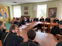 Затем состоялся пастырский семинар, который провёл настоятель Покровского храма деревни Воря-Богородское священник Георгий Дорофеев на тему «Телесный подвиг в жизни христианина по трудам святителей Игнатия Брянчанинова и Феофана Затворника».