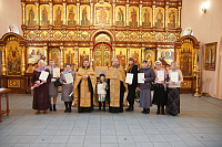 25 октября в Георгиевском храме города Дедовска состоялась выдача свидетельств об окончании Истринского отделения Библейско-богословских курсов имени преподобного Сергия Радонежского. Перед началом встречи благочинный Истринского церковного округа протоиерей Димитрий Подорванов и заведующий курсов протоиерей Димитрий Трущелёв совершили благодарственный молебен. Слушателям, окончившим двухгодичные курсы, были выданы свидетельства и подарена духовная литература.