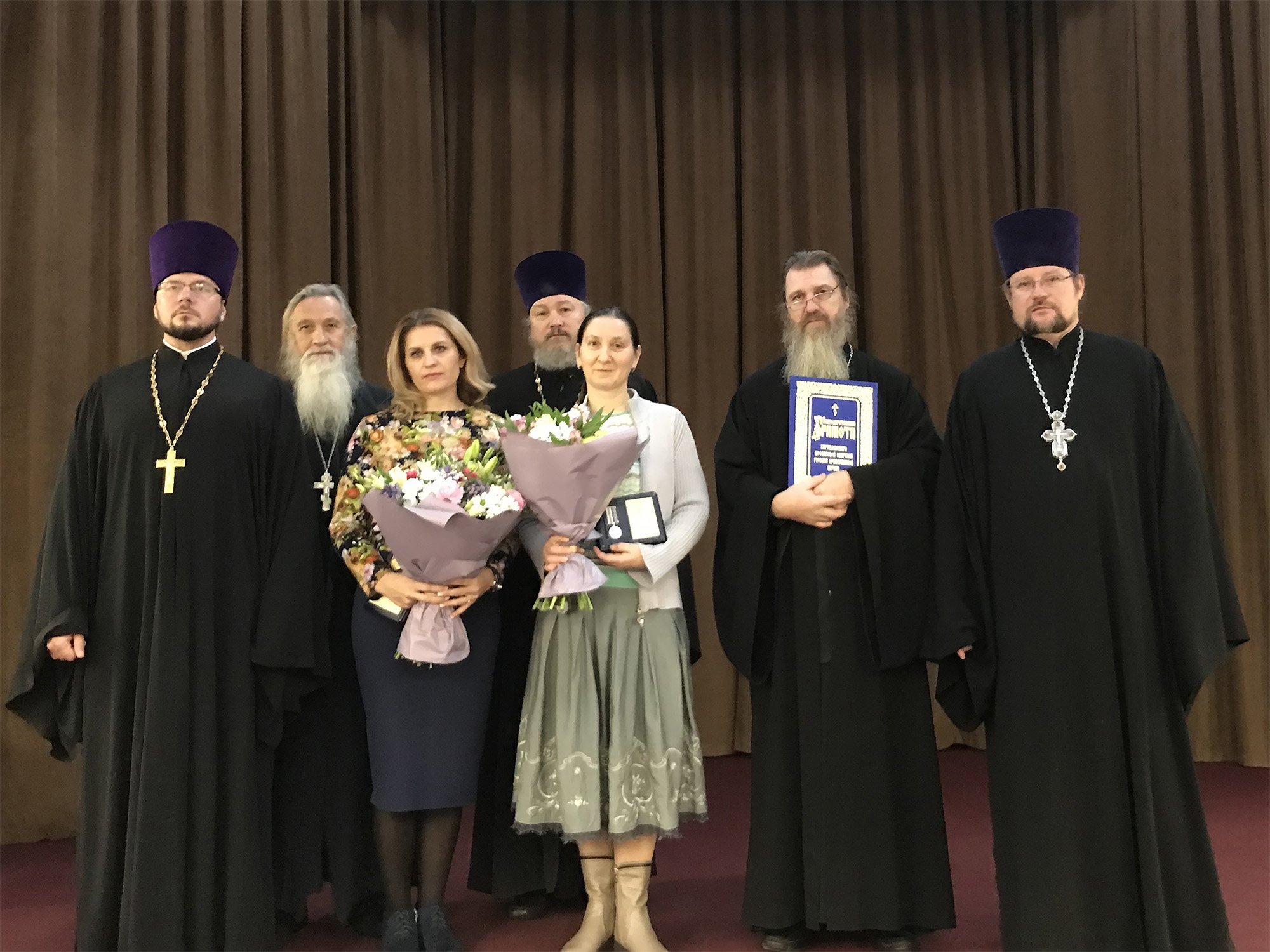 25 ноября в актовом зале духовно-просветительского центра Христорождественского храма города Мытищи благочинный церквей Мытищинского округа протоиерей Димитрий Оловянников вручил Патриаршие и епархиальные награды врачам Мытищинской городской клинической больницы, настоятелям храмов Мытищинского округа при лечебных учреждениях, а также членам Епархиального отдела по благотворительности и социальному служению, несущим попечение о заболевших коронавирусной инфекцией. Медали «Патриаршая благодарность» были удостоены заместитель главного врача Мытищинской городской больницы по лечебной части, ведущий специалист по борьбе с коронавирусной инфекцией Т.В. Королева и настоятель Пантелеимоновского храма города Мытищи при МГКБ священник Андрей Дрогонин. Отец благочинный передал награжденным благословение и слова благодарности митрополита Ювеналия.