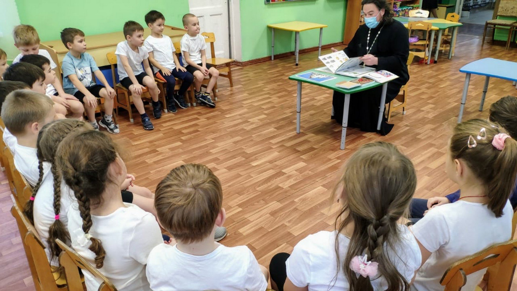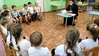 26 ноября в детском саду №12 города Дедовска состоялся открытый урок, который провел настоятель Георгиевского храма города Дедовска протоиерей Димитрий Подорванов. Темой занятия стало житие благоверного князя Александра Невского и Таинство Крещения.