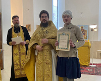 29 ноября после воскресной Литургии настоятель Державного храма священник Димитрий Третьяков вместе с директором приходской воскресной школы священником Дионисием Маевским наградили участников Церковно-певческой олимпиады для детей и юношества, которая была проведена 9 и 12 ноября в Москве по инициативе руководства детского отделения Московского Синодального хора.